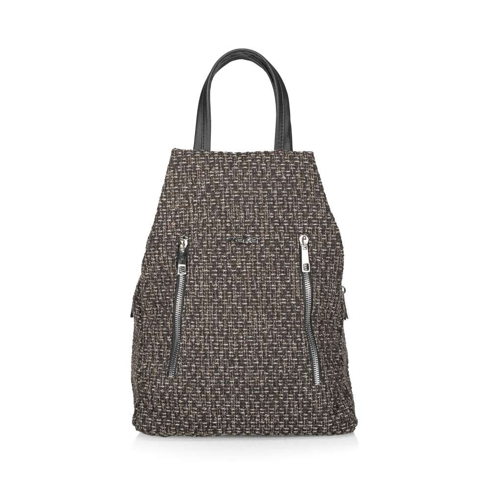 Nevšední a stylový dámský batoh značky RIEKER, který Vás uchvátí svým vzhledem. Svršek je z velmi zajímavého materiálu, doplněný logem značky. Tento moderní kousek má dvě ucha a délkově nastavitelné popruhy, a tak si batůžek můžete vzít jak do ruky, tak na záda. Na přední straně jsou dvě menší kapsičky pro drobnosti či klíče. Batoh má hlavní velkou kapsu na zip, kde je dostatek úložného prostoru pro dokumenty, knížku nebo ostatní nezbytné věci. Batůžek doplní každý Váš outfit.