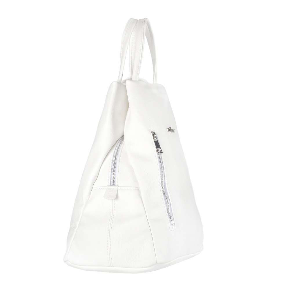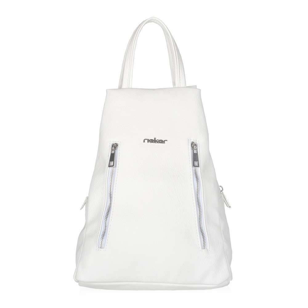 Batoh RIEKER je šikovným společníkem pro moderní ženu, jeho bílá barva vytváří nadčasový design. Přední zipy uzavírají malé kapsy pro rychlý přístup k drobnostem, zatímco logo značky na přední straně zvýrazňuje jeho kvalitu. Hlavní prostor je uzavřen zipem a obsahuje dvě vnitřní kapsy pro lepší organizaci. Batoh má také dva krátké úchyty pro pohodlné nošení v ruce a nastavitelné popruhy, které vám umožní nosit jej na zádech, a to v pohodlí. RIEKER batoh kombinuje módní vzhled a praktické využití pro každodenní pochůzky. Rozměry: cca V 35 cm x Š 27 cm x H 19 cm Vnitřní uspořádání: batoh není dělený. Batoh má délkově nastavitelné popruhy.