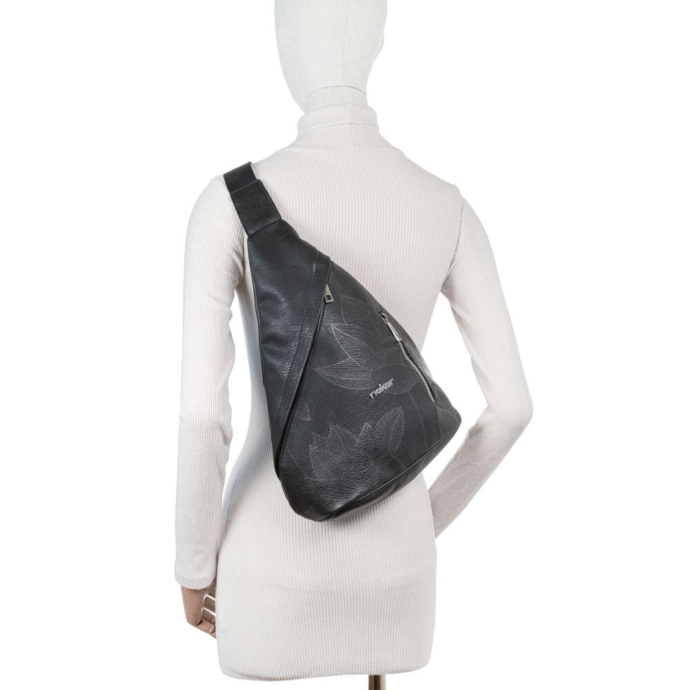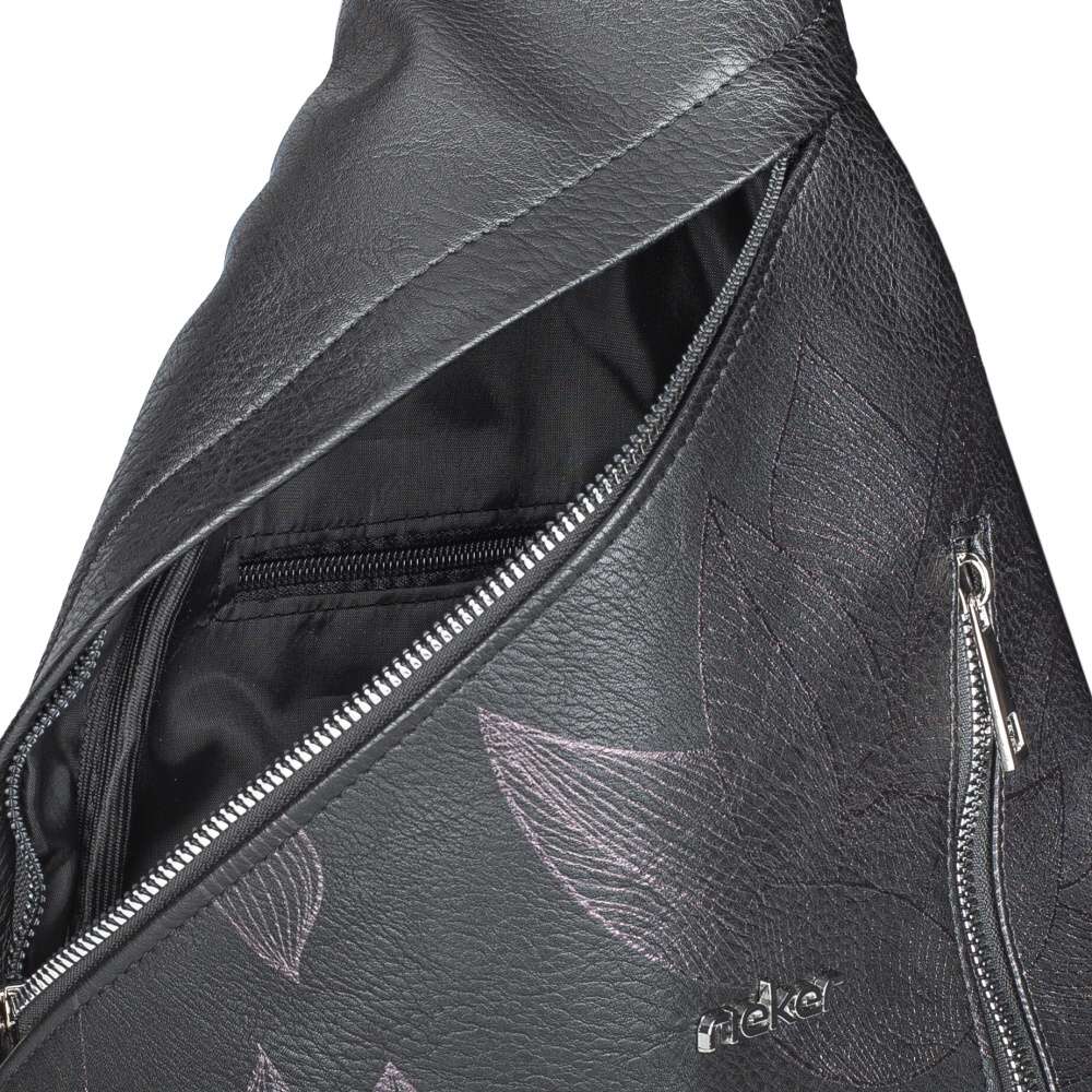 Černá barva svršku a exkluzivní květinový vzor této kabelky RIEKER zaručují elegantní a stylový doplněk pro každou ženu, která si ráda dopřeje něco výjimečného. Elegantní logo na přední části podtrhuje její jedinečnost a také jsou zde umístěny dva zipy. Jeden z nich uzavírá malou kapsičku a druhý hlavní úložný prostor, kde je umístěna menší kapsička pro uložení drobností. Praktická žena jistě ocení i zadní malou kapsičku, kde budou Vaše věci v bezpečí díky uzavření zipem. Tento batoh bude praktický a stylový doplněk pro každodenní použití také díky popruhu, který si můžete nastavit pro pohodlné nošení.