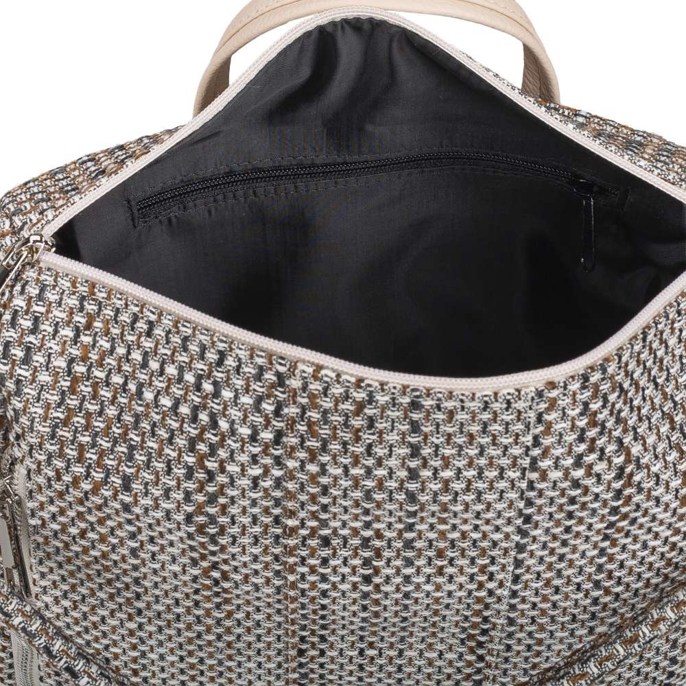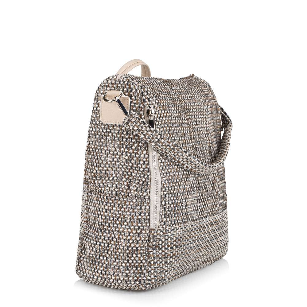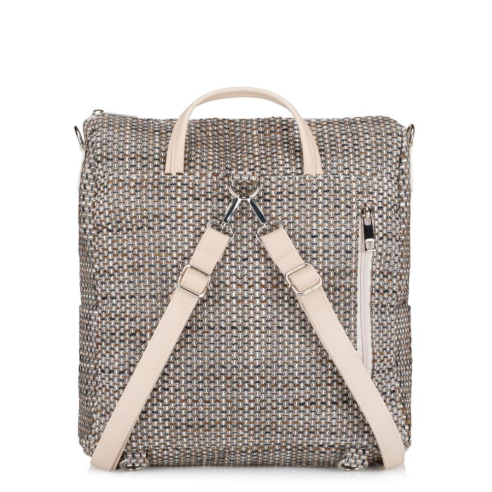 Pokud hledáte doplněk, který v sobě spojuje moderní design, funkčnost a maximální pohodlí při nošení, tento batoh značky RIEKER je tou správnou volbou. Jeho strukturovaný textilní materiál v podmanivém barevném provedení dodává modelu jedinečný charakter a stříbrné logo značky na přední straně působí decentně, ale zároveň zvýrazňuje jedinečný design. Přední část nabízí dvě menší kapsy na zip, kde rychle a pohodlně uložíte drobnosti a jedna kapsa je diskrétně umístěna na zadní části. Další praktické kapsy po stranách vytvoří prostor pro snadno dostupné drobnosti. Vnitřek hlavní přihrádky, uzavírané zipem, disponuje menšími přihrádkami, takže vaše věci budou vždy přehledně uspořádány. Batoh je navržen také pro maximální pohodlí při nošení - můžete si vybrat mezi kratším popruhem nebo dvěma nastavitelnými ramenními popruhy, které si snadno přizpůsobíte podle svých potřeb. Navíc jsou popruhy odepínatelné, což vám umožní flexibilně měnit styl nošení – jednou jako klasický batoh, jindy jako kabelku. Jako příjemný bonus má batoh i krátký úchyt pro pohodlnou manipulaci a uchycení do ruky. Batoh není jen praktickým doplňkem pro každodenní nošení, ale také výrazným módním prvkem, který dodá vašemu outfitu charakter a styl.