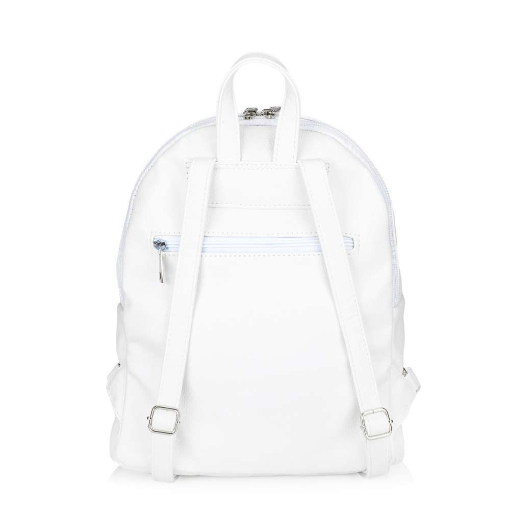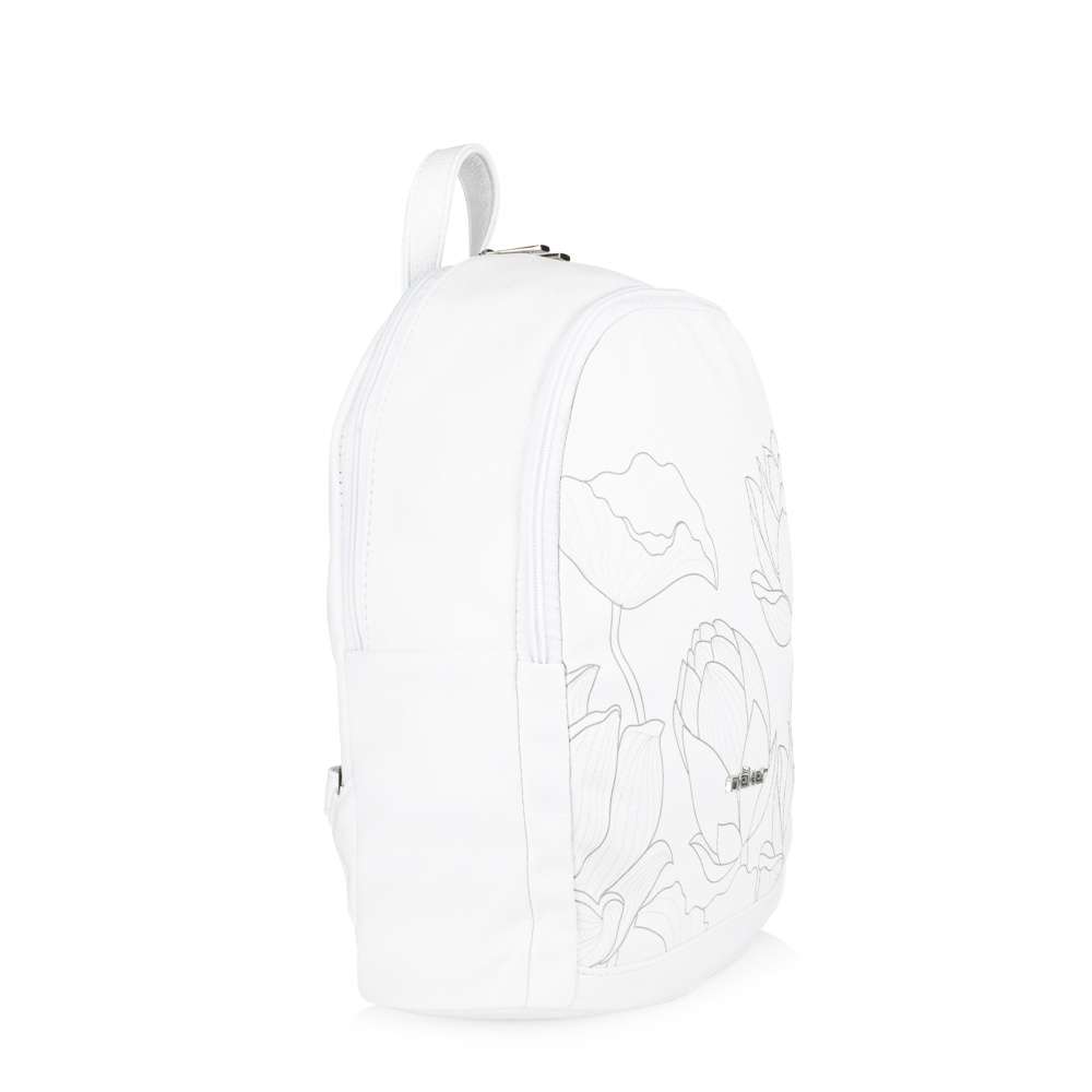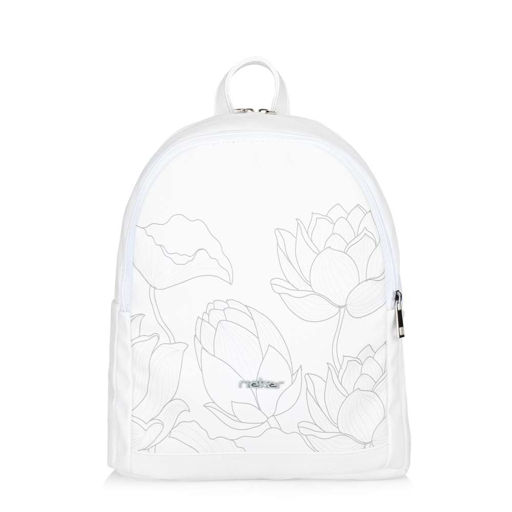 Batoh RIEKER bílé barvy s unikátním potiskem květin je elegantním a praktickým doplňkem pro každodenní použití. Punc originality přidává logo značky RIEKER, které se třpytí stříbrnou barvou na přední části. Design batohu zahrnuje zadní malou kapsu uzavřenou zipem, která umožňuje snadný přístup k drobným předmětům. Batoh je dělený na dvě samostatné části uzavřené zipem a v jedné z nich jsou dvě menší kapsičky, ideální pro lepší organizaci menších předmětů. Batoh je vybaven dvěma nastavitelnými popruhy pro pohodlné nošení na zádech a krátký úchyt poskytne možnost nošení v ruce. Stylový design tohoto batohu Vás bude provázet každým dnem, ať se vydáte do práce nebo na kávičku s kamarádkami.