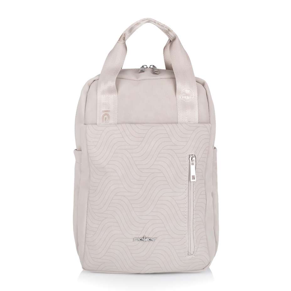 Béžová barva batohu RIEKER je doplněna působivým vzorem a stříbrným logem značky, které ji elegantně ozdobí. Tento design zajišťuje, že batoh bude skvěle ladit s každým outfitem a přitom zůstane stylovým a praktickým doplňkem pro každodenní nošení. Na přední straně najdete kapsu s magnetickým klipem a menší kapsu na zip, ideální pro uložení drobností. Zadní část batohu je také vybavena praktickou kapsou, zatímco postranní kapsy umožňují rychlý přístup k nezbytnostem. Po rozepnutí vrchního zipu se dostanete do hlavního prostoru, který zahrnuje dvě menší kapsy pro dokonalou organizaci vašich věcí. Batoh má dvě krátké uši pro pohodlné nošení v ruce a nastavitelné popruhy pro komfortní nošení na zádech, takže dokonale spojuje styl a funkčnost. Tento batoh kombinuje praktičnost, šarm a kvalitu, čímž se stává skvělým doplňkem pro různé příležitosti. Rozměry: cca V 34 cm x Š 24 cm x H 12 cm Vnitřní uspořádání: batoh není dělený. Batoh má délkově nastavitelné popruhy.