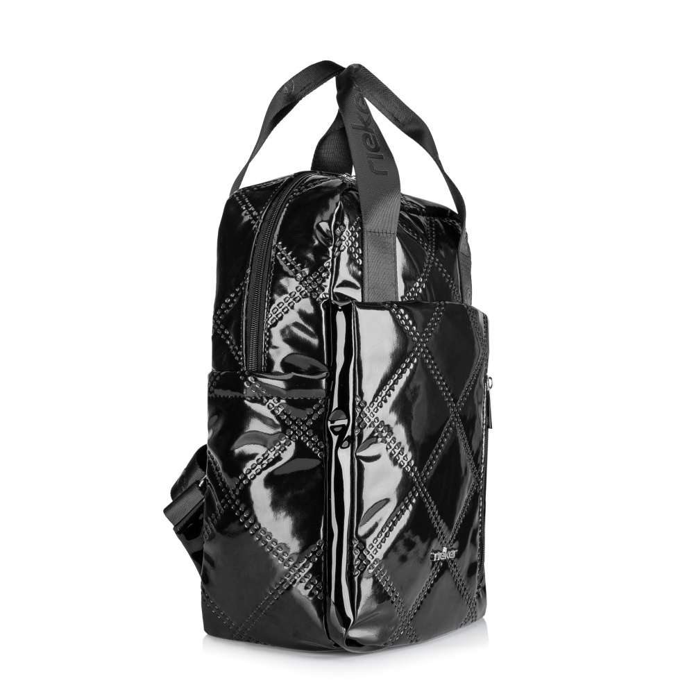 Stylový batoh RIEKER, který zaujme moderním designem. Lesklý černý svršek v kombinaci s jemnými detaily a stříbrným logem značky vytváří luxusní vzhled. Praktické přihrádky nabízejí dostatek prostoru pro vaše každodenní nezbytnosti, zatímco nastavitelné popruhy zajistí maximální komfort při nošení. Na přední straně najdete kapsu s magnetickým klipem a menší kapsu na zip, ideální pro uložení drobností. Zadní část batohu je také vybavena praktickou kapsou, zatímco postranní kapsy umožňují rychlý přístup k nezbytnostem. Po rozepnutí vrchního zipu se dostanete do hlavního prostoru, který zahrnuje dvě menší kapsy pro dokonalou organizaci vašich věcí. Batoh má dvě krátké uši pro pohodlné nošení v ruce a nastavitelné popruhy pro komfortní nošení na zádech, takže dokonale spojuje styl a funkčnost. Tento batoh je skvělou volbou pro ženy hledající kombinaci výrazného designu a praktičnosti pro každodenní použití. Rozměry: cca V 34 cm x Š 24 cm x H 12 cm Vnitřní uspořádání: batoh není dělený. Batoh má délkově nastavitelné popruhy.