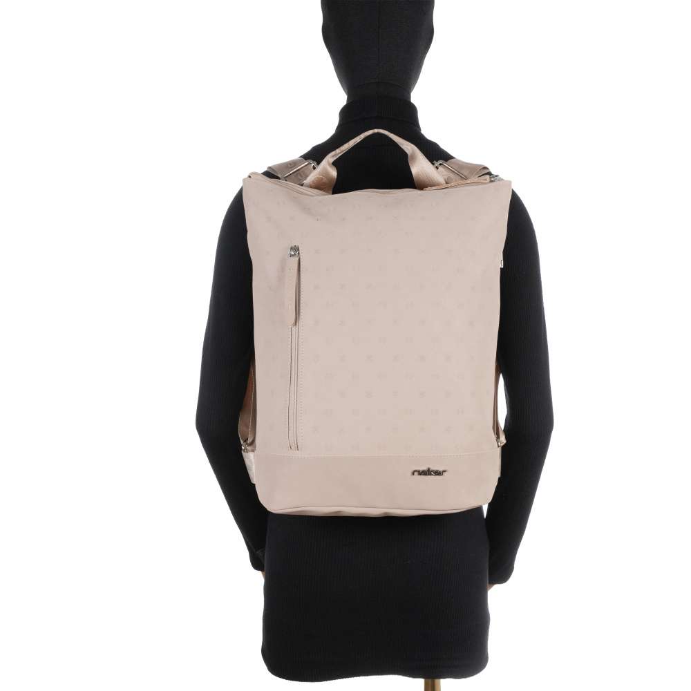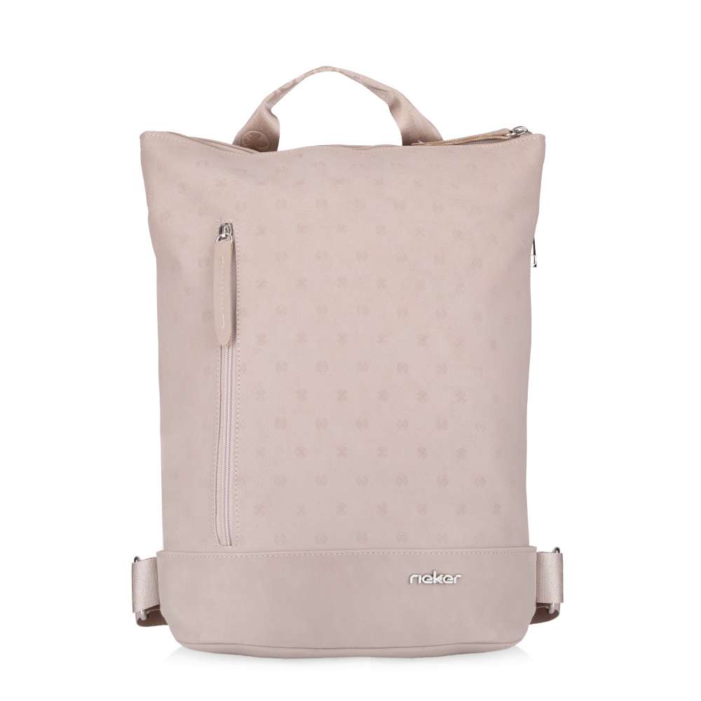 Unikátnost tohoto batohu RIEKER podtrhuje jemný vzor, který mu dodává stylový charakter a stříbrné logo značky na přední straně elegantně září a vytváří působivý kontrast. Kromě působivého designu nabízí batoh také praktická řešení pro každodenní použití. Přední kapsička s uzavíráním na zip poskytuje prostor pro rychle dostupné věci, jako jsou klíče, mobil nebo drobné doplňky. Zadní kapsa slouží jako diskrétní a bezpečné místo pro cennosti. Hlavní úložný prostor se uzavírá zipem a disponuje vnitřním členěním s menšími přihrádkami, které umožní přehledné uložení drobných předmětů. Batoh je vybaven délkově nastavitelnými popruhy, které umožňují pohodlné nošení na zádech a krátkým úchytem pro snadné držení v ruce. Tento batoh je stylovým a spolehlivým společníkem do práce, na nákupy i volnočasové aktivity - doplněk, který oživí váš outfit a zároveň vám poskytne maximální komfort.