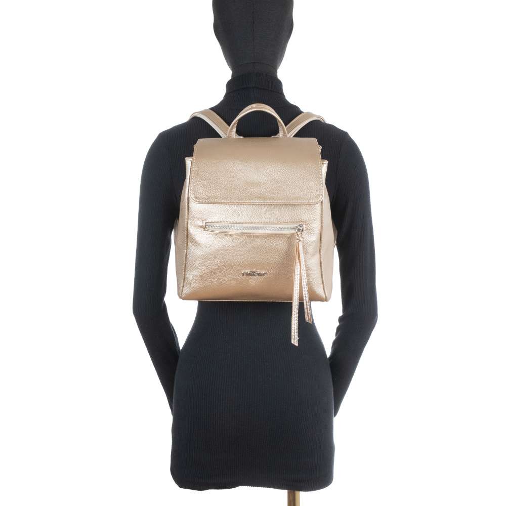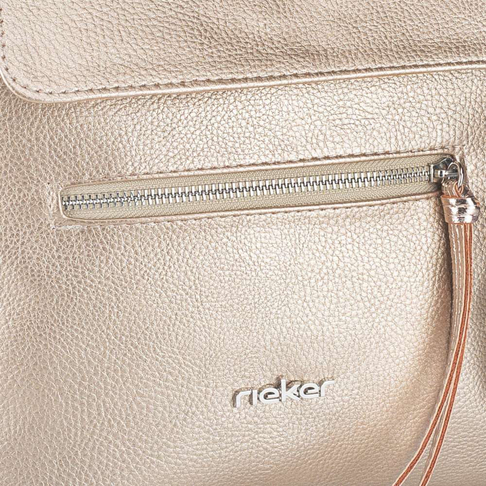 Batoh RIEKER s nepřehlédnutelným zlatým svrškem je výrazným módním doplňkem, který okamžitě upoutá pozornost a dodá vašemu outfitu nádech výjimečnosti. Stříbrné logo značky vytváří elegantní kontrast a podtrhuje jeho originalitu. Kromě atraktivního vzhledu batoh nabízí také praktičnost, kterou ocení každá moderní žena. Přední kapsička se zipem dekorovaným výraznou visačkou nabízí rychlý přístup k drobnostem, zatímco vrchní část uchycená magnetickým klipem ukrývá hlavní zipový prostor. Boční pásky umožňují upravit tvar batohu a udržet jeho stabilitu podle potřeby, což zvyšuje jeho funkčnost i vizuální propracovanost. Vnitřní prostor je promyšleně členěný a obsahuje menší kapsičky – jednu otevřenou a druhou na zip, díky čemuž budete mít ve věcech vždy dokonalý přehled. Pohodlí při nošení zajišťují dva nastavitelné ramenní popruhy, které se přizpůsobí vašim potřebám během celého dne a praktický krátký úchyt navíc umožňuje snadnou manipulaci v ruce. Tento batoh RIEKER je dokonalým spojením výrazného stylu, funkčnosti a každodenního komfortu – doplněk, který vás bude provázet s jistotou, elegancí a špetkou originality v každé situaci.