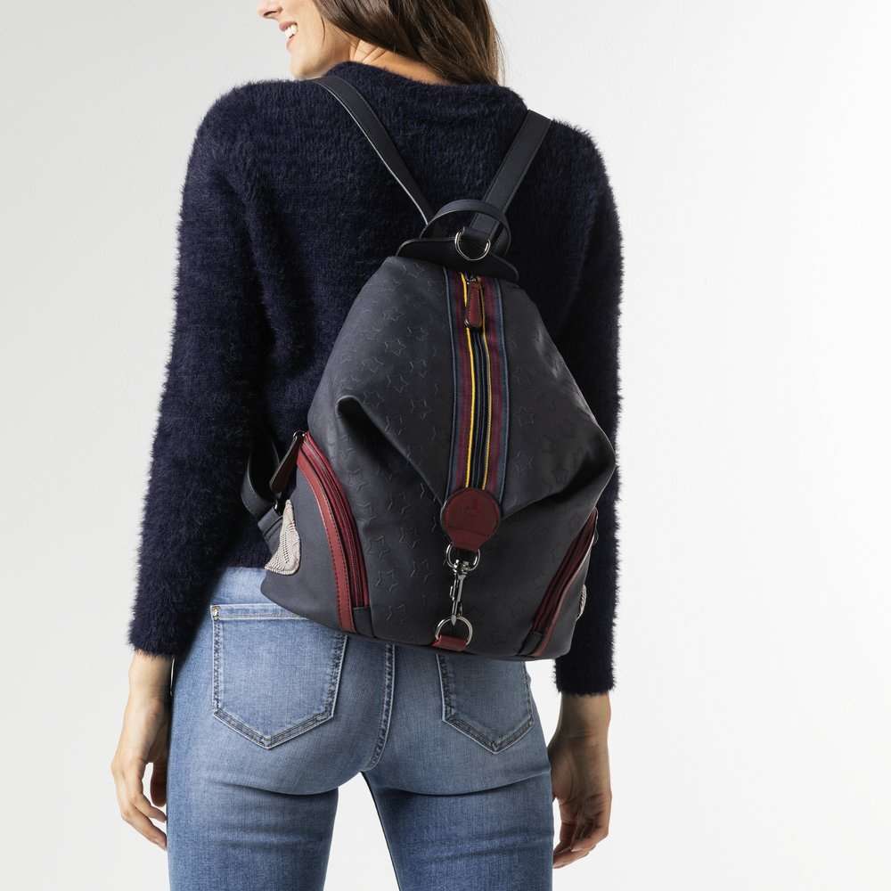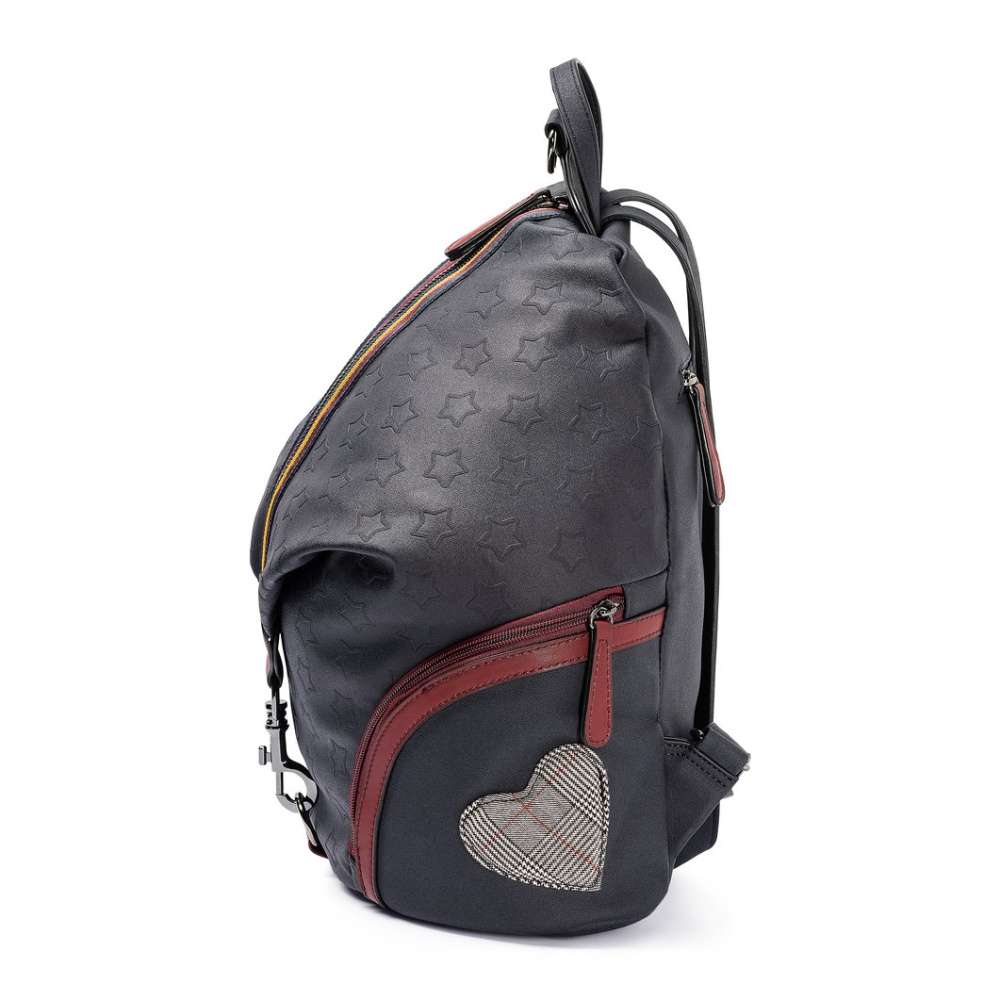 Tento stylový batoh od značky RIEKER je perfektně propracovaný a zdobný kontrastním lemováním zipů. Batůžek má praktické boční kapsy a funkční karabinu, kterou můžete zapnout buď nahoře či dole. Bude Vašim výjimečným doplňkem k různým outfitům.