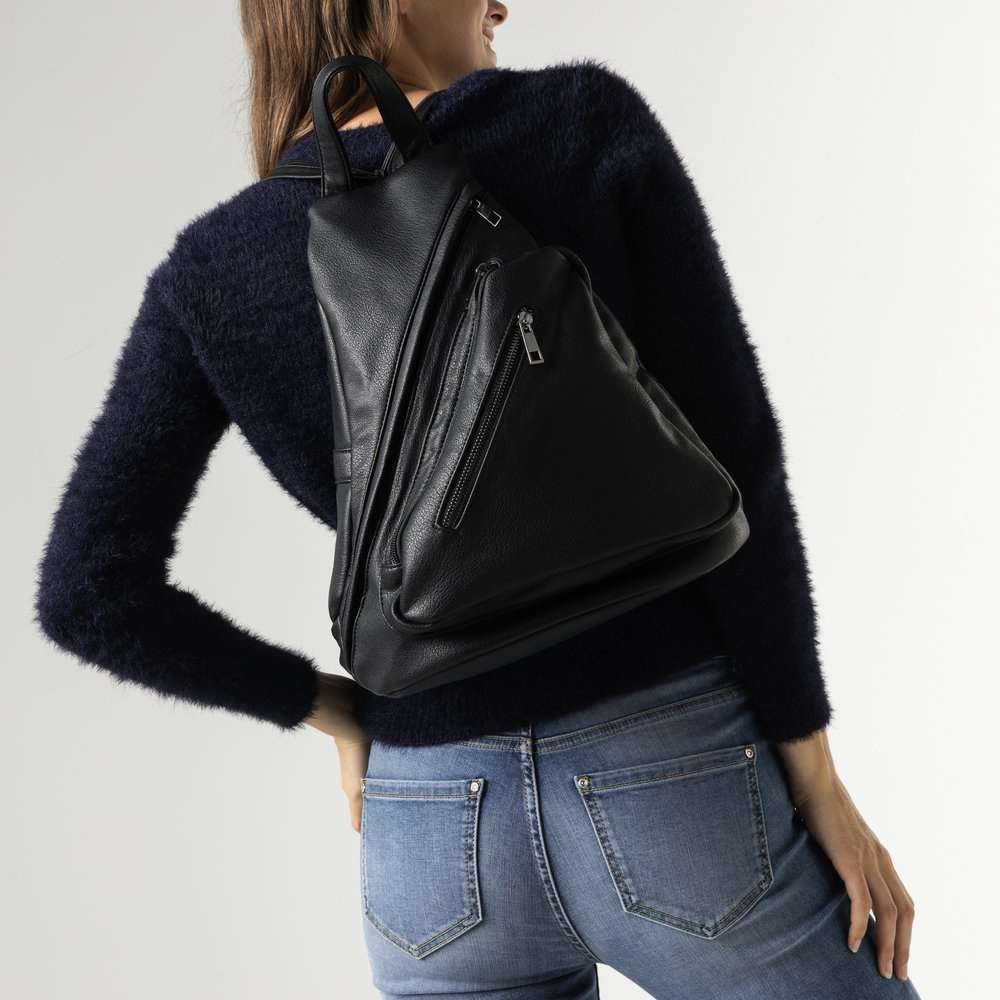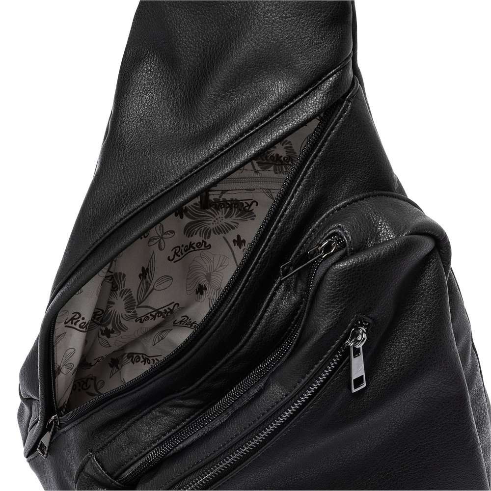 Dámský batoh černé barvy značky RIEKER Vás na první pohled zaujme svým tvarem. Tento batůžek bude Vaším výjimečným doplňkem k různým outfitům.