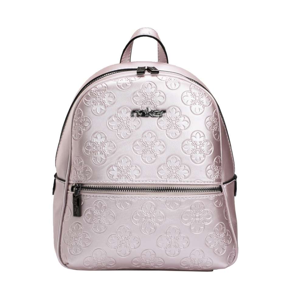 Detailní informace Menší dámský batoh od značky Rieker si oblíbíte díky krásném metalickém svršku v růžové barvě. Elegantní vzhled vytváří hladký materiál a vytlačený vzor z přední strany. Batoh se uzavírá zipem, po jehož rozepnutí naleznete několik dalších kapes například pro Váš mobil a klíče. Má ucho, ale také dva velikostně regulovatelné zadní popruhy, které si můžete nastavit dle svých představ. Bude Vašim báječným doplňkem k různým outfitům.