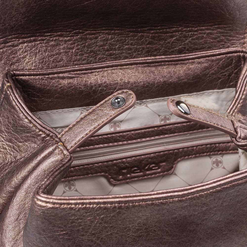 Batoh uzavíratelný klopou s magnetickým klipem má vnitřní kapsu, do které se vejde snad všechno, co potřebujete mít u sebe. Uvnitř se nachází dvě otevřené kapsičky a jedna zapínatelná zipem. Na zadní straně je pak ještě jedna kapsička na zip.