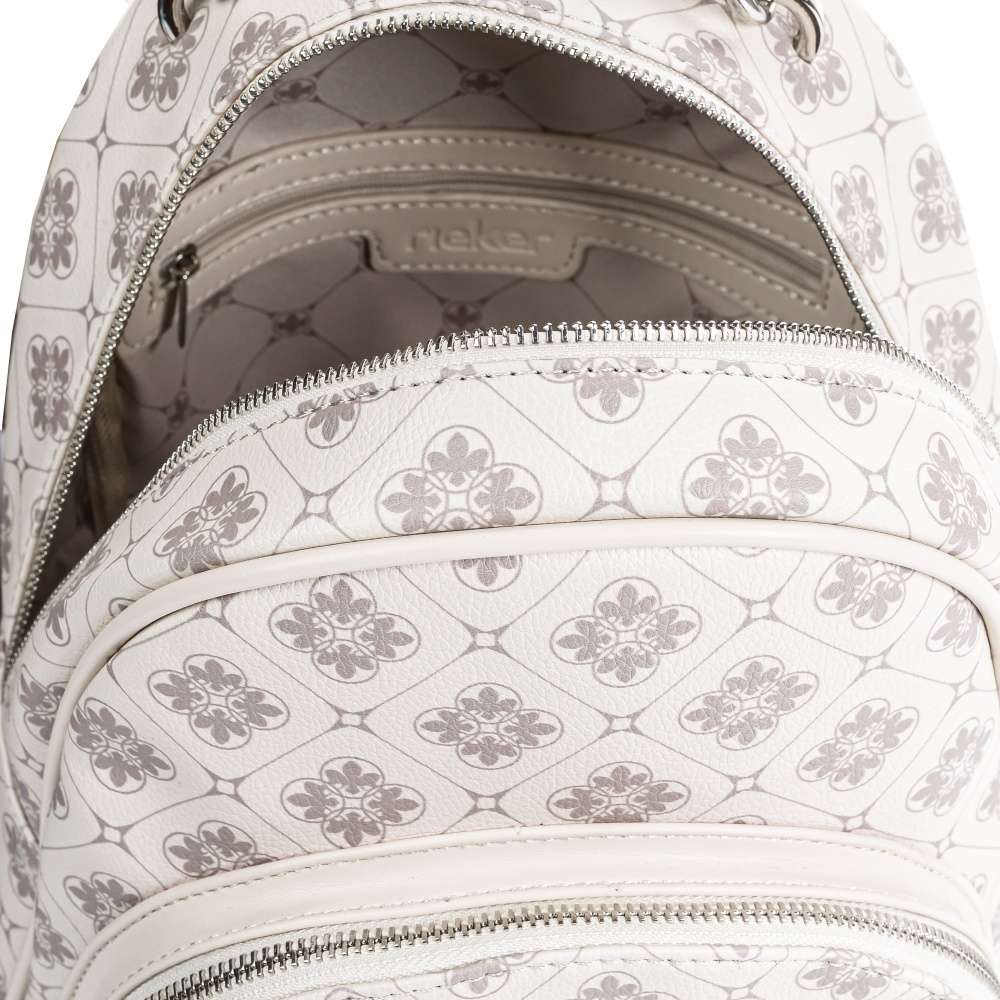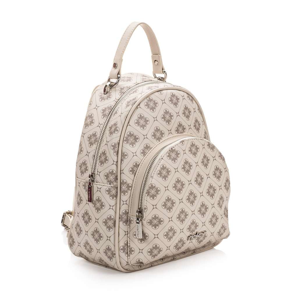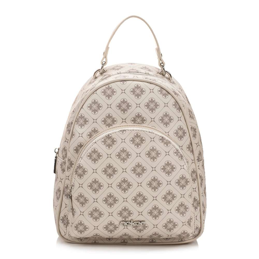 Tento dámský batoh od značky Rieker má svršek v béžové barvě a oblíbíte si ho díky elegantnímu kontrastnímu vzoru. Na přední straně Vás jistě potěší kapsička pro drobnosti. Batoh se uzavírá zipem, po jehož rozepnutí naleznete několik dalších kapes například pro Váš mobil a klíče. Má ucho, ale také dva velikostně regulovatelné zadní popruhy, které si můžete nastavit dle svých představ. S tímto skvělým kouskem zaujmete už na první pohled, bude Vám dělat skvělého společníka při různých příležitostech.