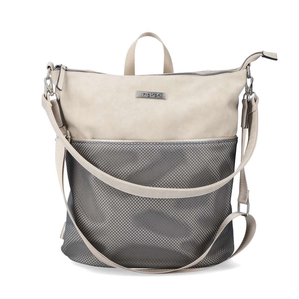 Detailní informace Dámský batoh Vás zaujme svou praktičností. Díky odnímatelným popruhům si během pár sekund můžete z batohu udělat kabelku přes rameno či do ruky. Popruhy na záda i rameno jsou délkově nastavitelné. Svršek kabelky je zdobený síťkou ze přední strany a malým nápisem rieker na kovovém proužku. Na boku kabelky je kapsička na zip, do které si můžete dát drobnosti. Vnitřek batohu je rozdělený na velkou a menší kapsu. Ideální je například do školy či na výlet.