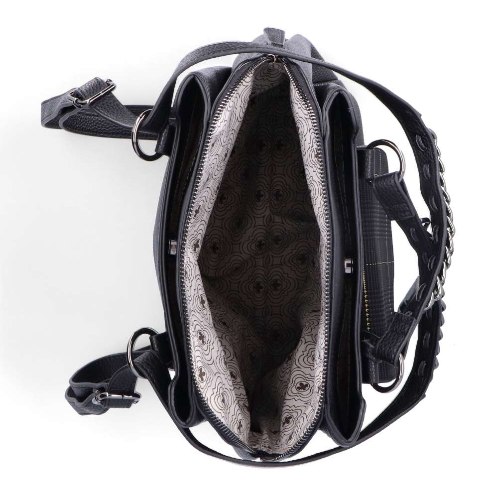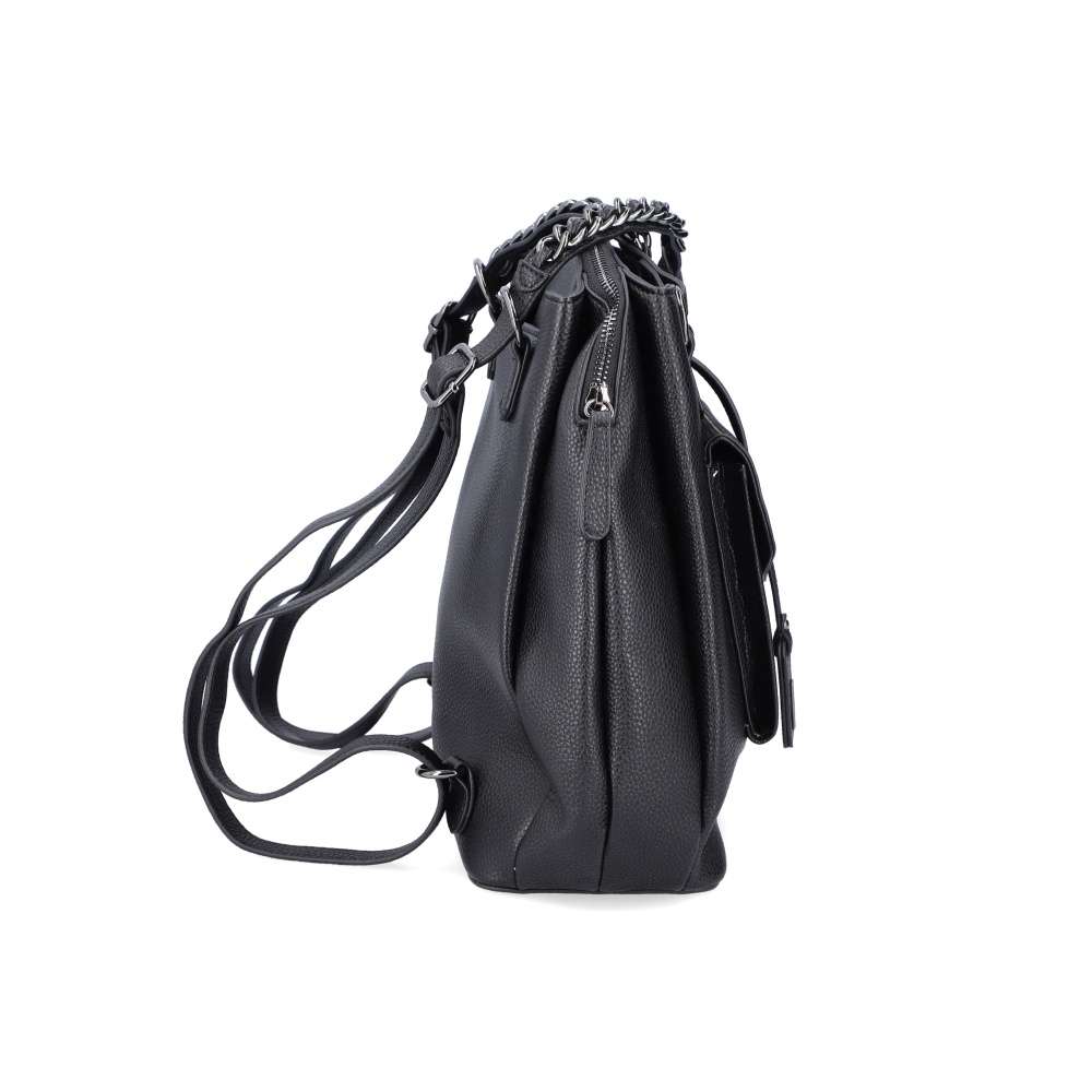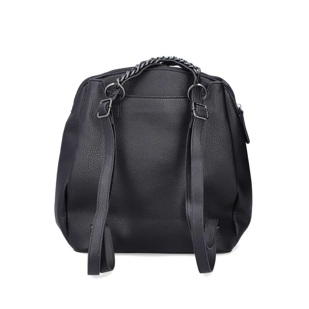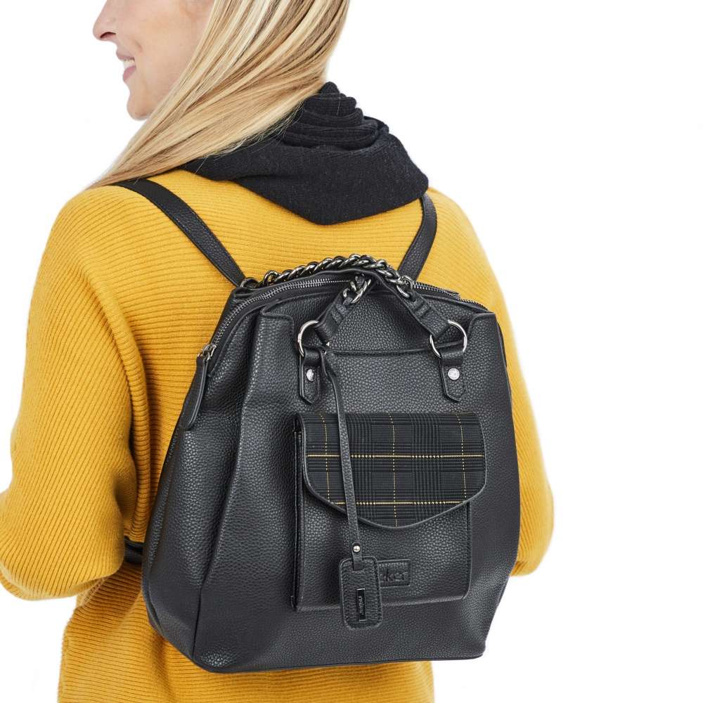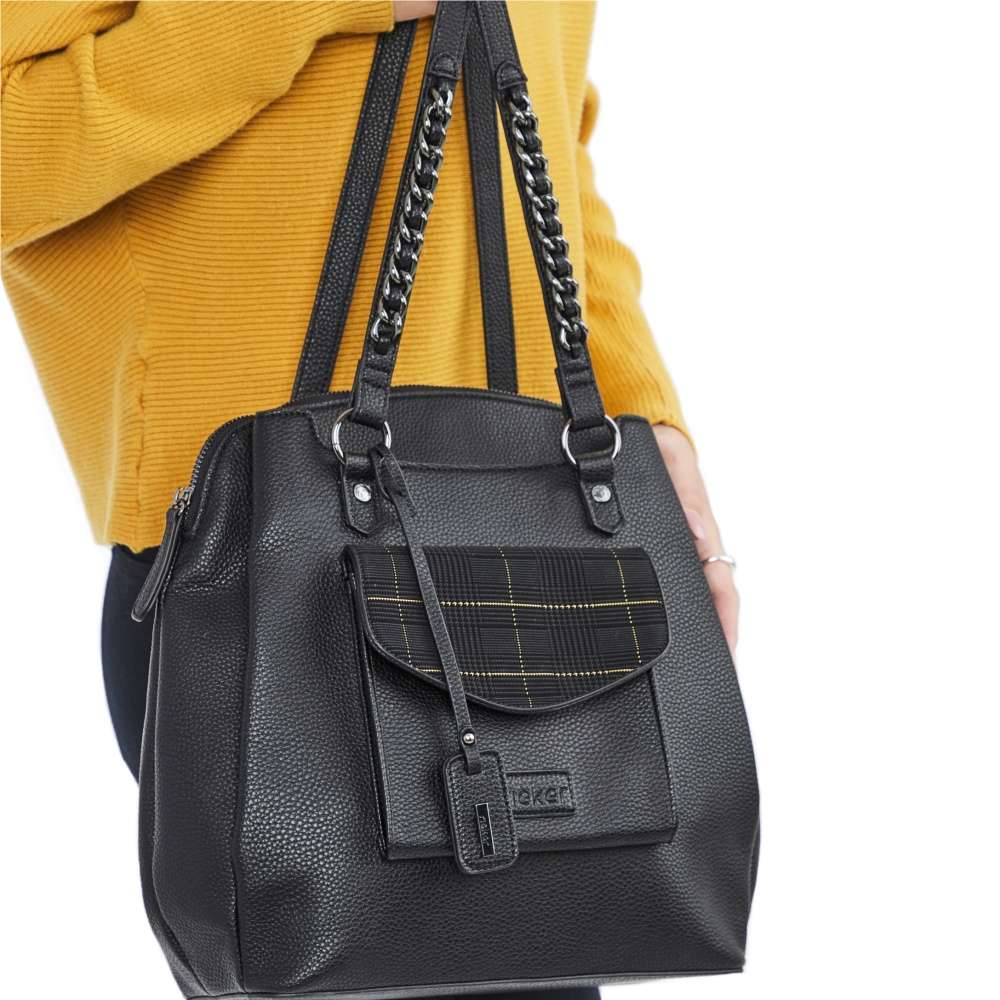 Dámský batoh značky RIEKER si Vás svým extravagantním vzhledem skutečně získá. Tento kousek je tvořen svrškem v černé barvě. Jako doplněk se zde nachází barevně sladěný řetízek na uchách batohu a přívěšek s logem. Batůžek je vybaven spoustou praktických kapes uzavíratelných na zip. V přední části se nachází menší kapsička na Vaše drobnosti, která je ozdobena klopou s kontrastním károvým vzorem. Pro každodenní komfortní nošení na zádech je batoh opatřen dvěma délkově nastavitelnými popruhy, a praktickým uchem pro nošení v ruce. Tento kousek Vám bude věrným společníkem po celý den.