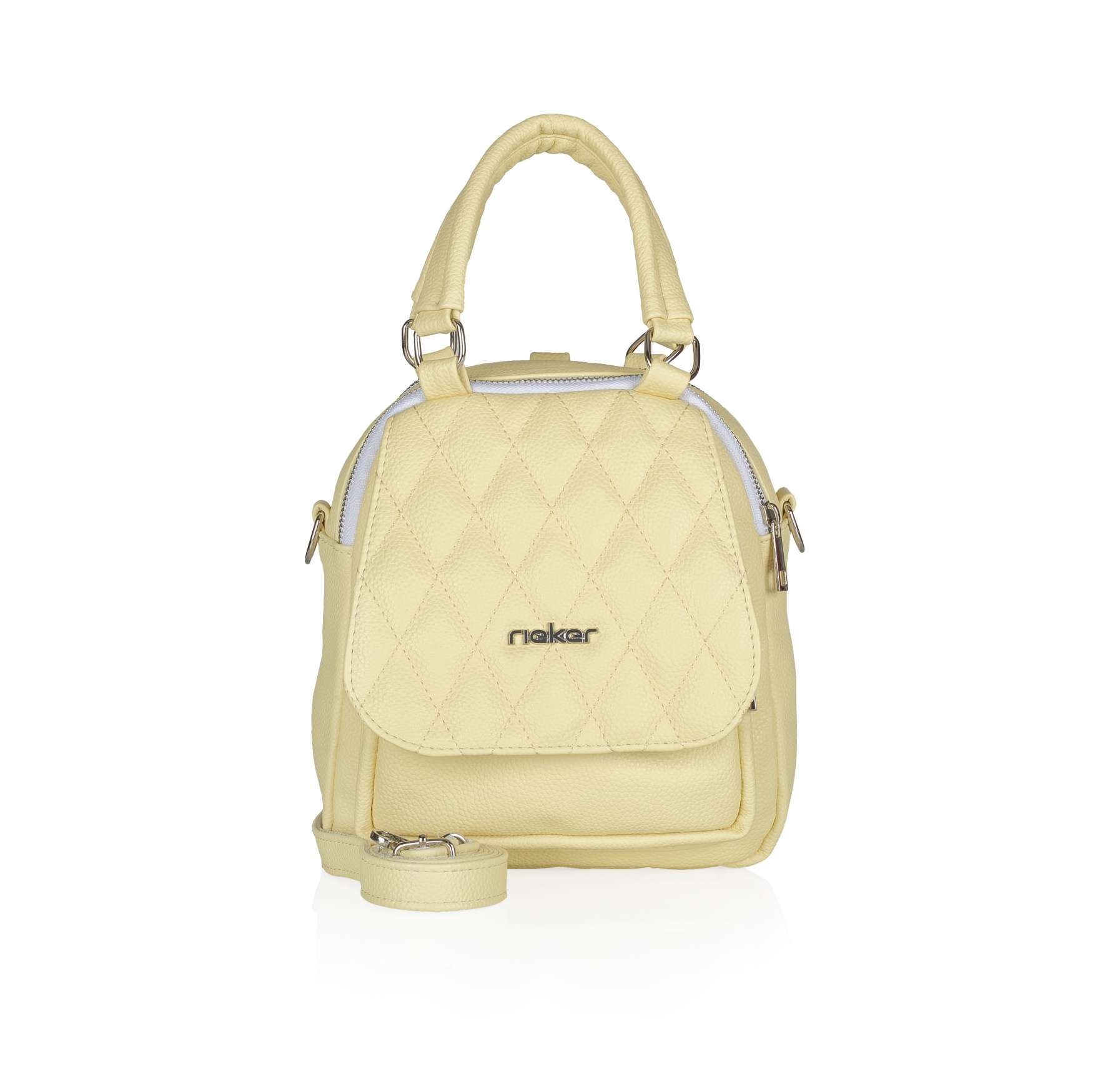 Detailní informace Tento malý batoh od značky Rieker představuje vše, co potřebujete mít ve svém šatníku. Hlavní prostor se uzavírá dvěma zipy a uvnitř naleznete pár menších kapsiček pro lepší organizaci všech drobností. Na přední straně batůžku najdeme magnetickou klopu, kterou zdobí logo Rieker. Klopa ukrývá další menší kapsičku na zip, která je ideální např. na klíče. Pokud Vás unaví nosit batoh na zádech, můžete využít odepínatelný popruh a vzít si ji jako crossbody nebo dokonce jako kabelku do ruky. Díky multifunkčnímu využití je perfektní pro všechny příležitosti.