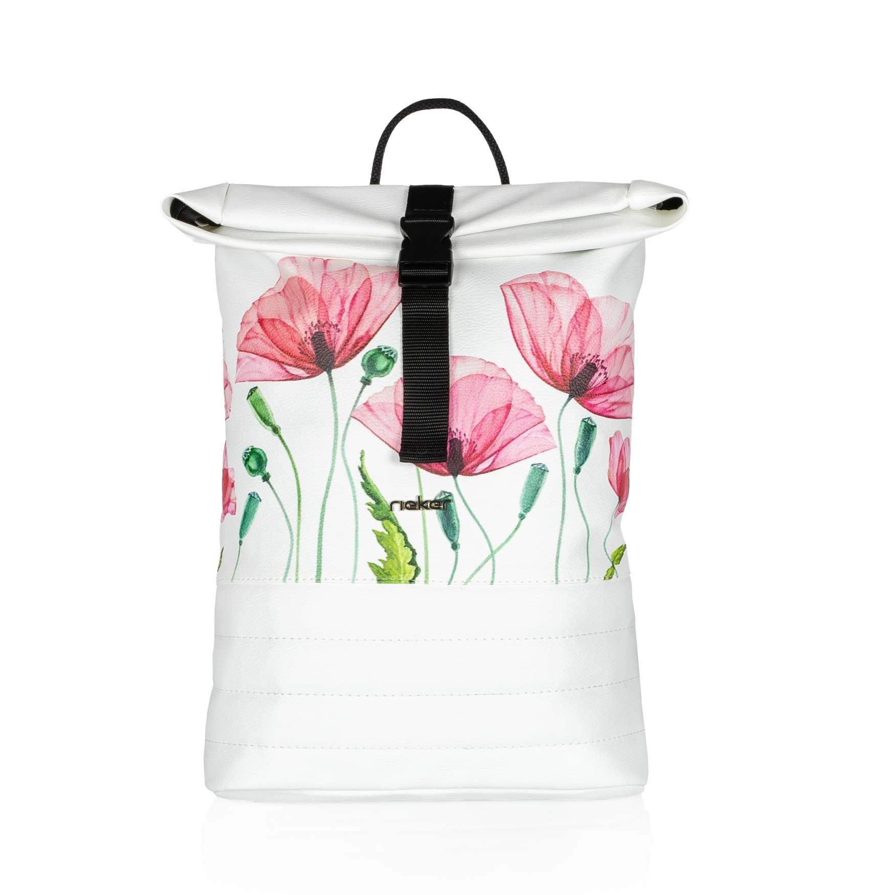 Detailní informace Tento jednoduchý a praktický batoh značky Rieker Vás zaujme na první pohled potiskem vlčích máků a jemným prošitím spodní části. Otočením objevíte zip uzavírající velkou kapsu kopírující celou zadní část batohu. Po rozepnutí přezky, odklopení horní části a rozepnutí zipu otevřete hlavní kapsu. Tady se nacházejí dvě menší kapsičky z toho jedna má zip. Pro pohodlné nošení jsou zde dva délkově nastavitelné popruhy a malé ucho pro uchopení do ruky. Tento kousek bude ideálním společníkem na výlet, ale také při cestě do práce.