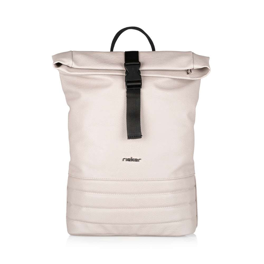 Detailní informace Tento jednoduchý a praktický batoh značky Rieker Vás zaujme na první pohled svojí jednoduchostí. Hladký svršek v nadčasové světlé barvě má zdobení logem značky a ve spodní části prošití, které dodá modelu na osobitosti. Otočením objevíte zip uzavírající velkou kapsu kopírující celou zadní část batohu. Po rozepnutí přezky, odklopení klopy a rozepnutí zipu otevřete hlavní kapsu. Tady se nacházejí dvě menší kapsičky z toho jedna má zip. Pro pohodlné nošení jsou zde dva délkově nastavitelné popruhy a malé ucho pro uchopení do ruky. Tento kousek bude ideálním společníkem na výlet, ale také při cestě do práce.