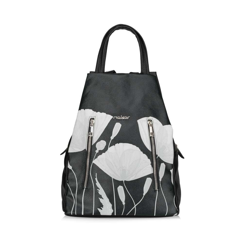 Detailní informace Nevšední a stylový dámský batoh značky RIEKER, který Vás uchvátí svým vzhledem. Svršek je zdoben decentním vzorem vlčích máků a doplněn logem značky. Tento moderní kousek má dvě ucha a délkově nastavitelné popruhy, batoh si můžete vzít jak do ruky, tak na záda. Na přední straně jsou dvě menší kapsičky se zipem pro drobnosti či klíče. Batoh má hlavní velkou kapsu na zip, kde je dostatek úložného prostoru a disponuje ještě dvěma malými kapsičkami, jedna je opatřena zipem. Batoh doplní každý Váš outfit.