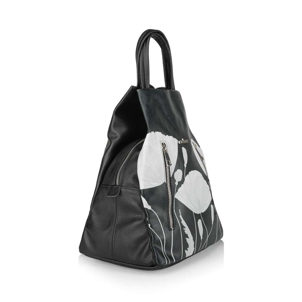 Nevšední a stylový dámský batoh značky RIEKER, který Vás uchvátí svým vzhledem. Svršek je zdoben decentním vzorem vlčích máků a doplněn logem značky. Tento moderní kousek má dvě ucha a délkově nastavitelné popruhy, batoh si můžete vzít jak do ruky, tak na záda. Na přední straně jsou dvě menší kapsičky se zipem pro drobnosti či klíče. Batoh má hlavní velkou kapsu na zip, kde je dostatek úložného prostoru a disponuje ještě dvěma malými kapsičkami, jedna je opatřena zipem. Batoh doplní každý Váš outfit. Rozměry: cca V 35 cm x Š 27 cm Vnitřní uspořádání: batoh není dělený. Batoh má délkově nastavitelné popruhy.