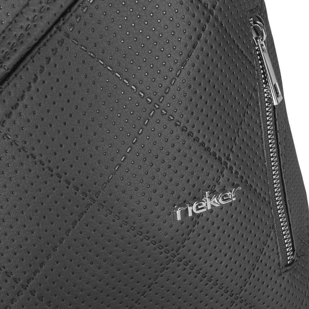 Kabelka značky RIEKER vyniká zajímavým tvarem a působivým vzorem na svršku, který přidává do designu originalitu, dalším doplňkem je logo značky zdobící kabelku a je znakem kvality. Malá kapsa uzavřená zipem na přední straně poskytuje praktický úložný prostor pro rychlý přístup k drobným předmětům a další malá kapsa na zadní straně nabízí další možnost úložného prostoru. Hlavní prostor kabelky je uzavřen zipem a obsahuje malou kapsu pro lepší organizaci. Nastavitelný popruh umožňuje pohodlné nošení kabelky přes rameno. Tato kabelka RIEKER spojuje zajímavý design s praktičností pro každodenní použití.