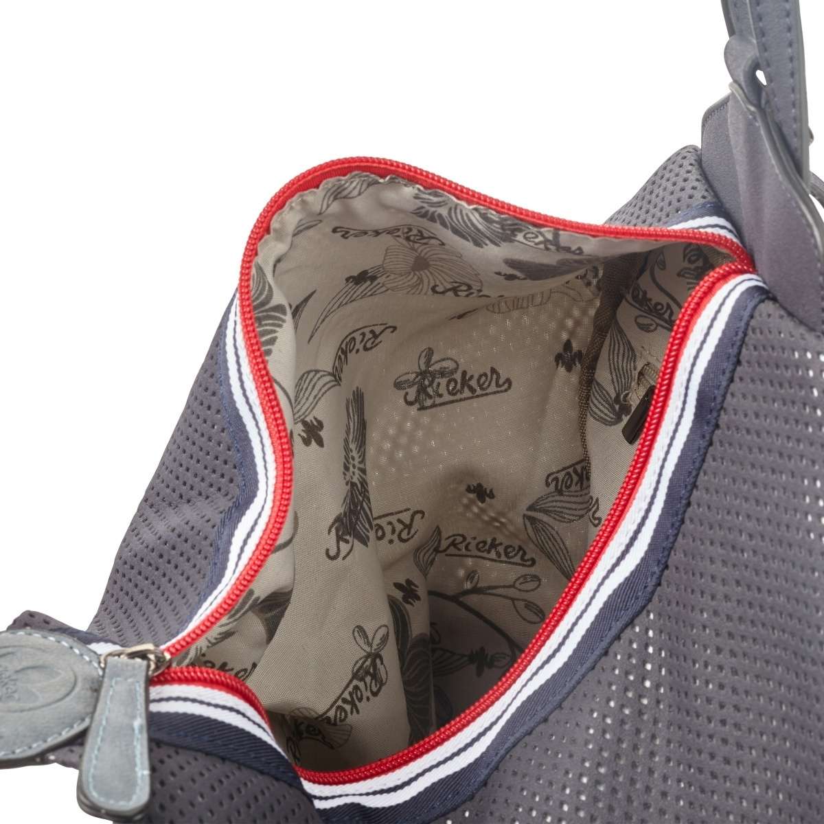 Tento modrý stylový batoh od značky RIEKER je perfektně propracovaný, má praktické boční kapsy. Dalším doplňkem je funkční karabina, jemná perforace a hnědá barva doladěna s batohem. Batoh je na zip, po jehož rozepnutí Vás mile překvapí nádherná podšívka a několik dalších kapes pro drobnosti. Má dva velikostně regulovatelné zadní popruhy, které si můžete nastavit dle svých představ. Bude Vašim výjimečným doplňkem k různým outfitům.