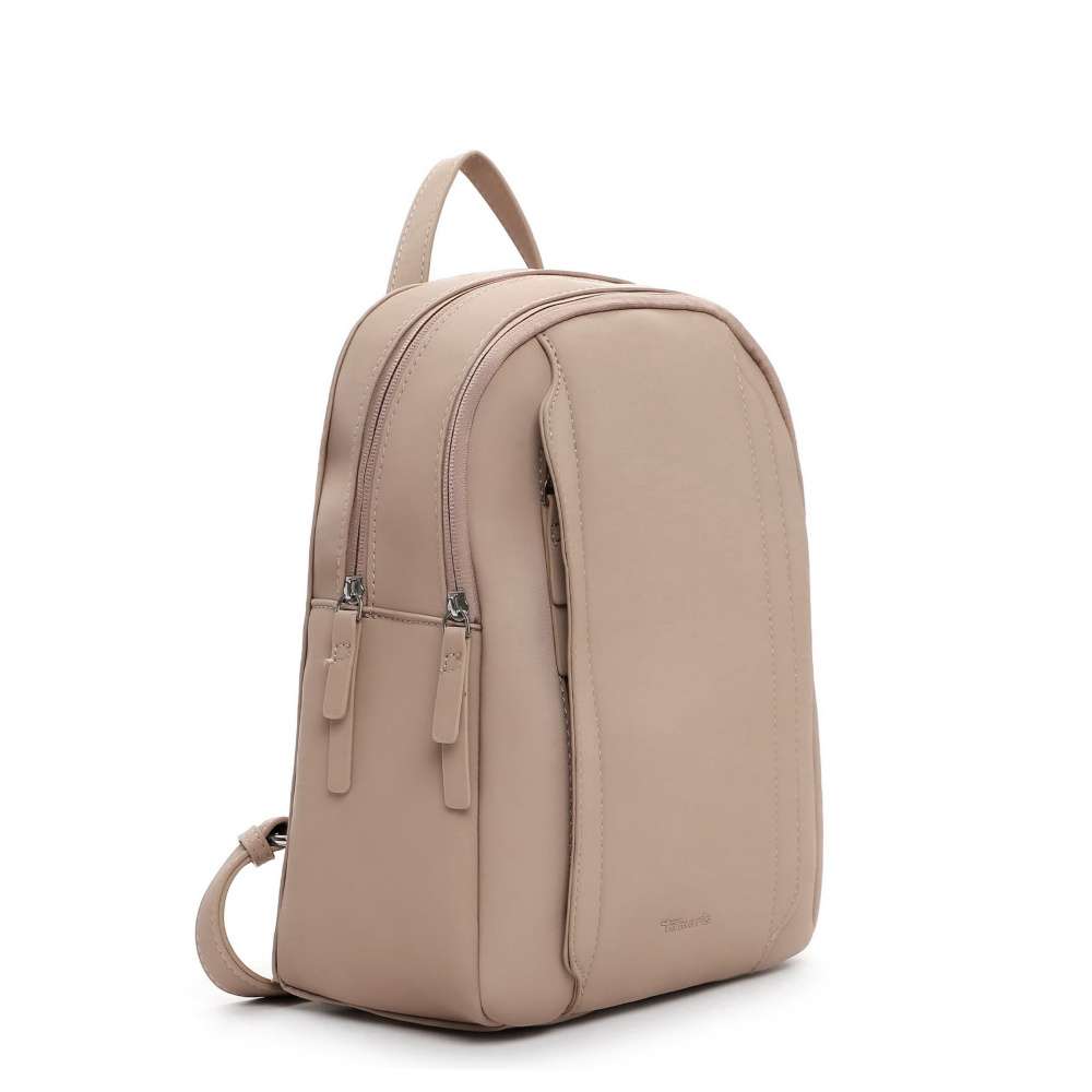 Batoh značky Tamaris je příkladem nadčasového stylu, který kombinuje stylový vzhled s moderní praktičností. Působivé čisté linie, precizní prošívání a decentní logo značky vytvářejí harmonický design, který zaujme na první pohled a dodává batohu vybraný charakter. Jeho promyšlená konstrukce nabízí dvě samostatné hlavní části, které zajistí dokonalou přehlednost a organizaci vašich věcí. Zadní část je vybavena prostornější otevřenou kapsičkou, ideální pro uložení větších nezbytností, zatímco přední část ukrývá dvě menší kapsy – jednu na zip pro bezpečné uložení cenností a druhou otevřenou pro rychlý přístup k drobnostem. Elegantně všitá přední kapsa na zip a diskrétní zadní kapsička poskytují bezpečné místo pro cennosti a nezbytnosti, takže batoh nejen skvěle vypadá, ale i pečlivě chrání obsah. Pohodlí při nošení je zajištěno nastavitelnými ramenními popruhy, které se jemně přizpůsobí vaší postavě, a pevné horní ucho umožňuje držení v ruce. Tento batoh je ideální volbou pro ženy, které chtějí spojit spolehlivost, komfort a moderní styl – perfektní společník pro každodenní aktivity i pracovní či volnočasové chvíle.
