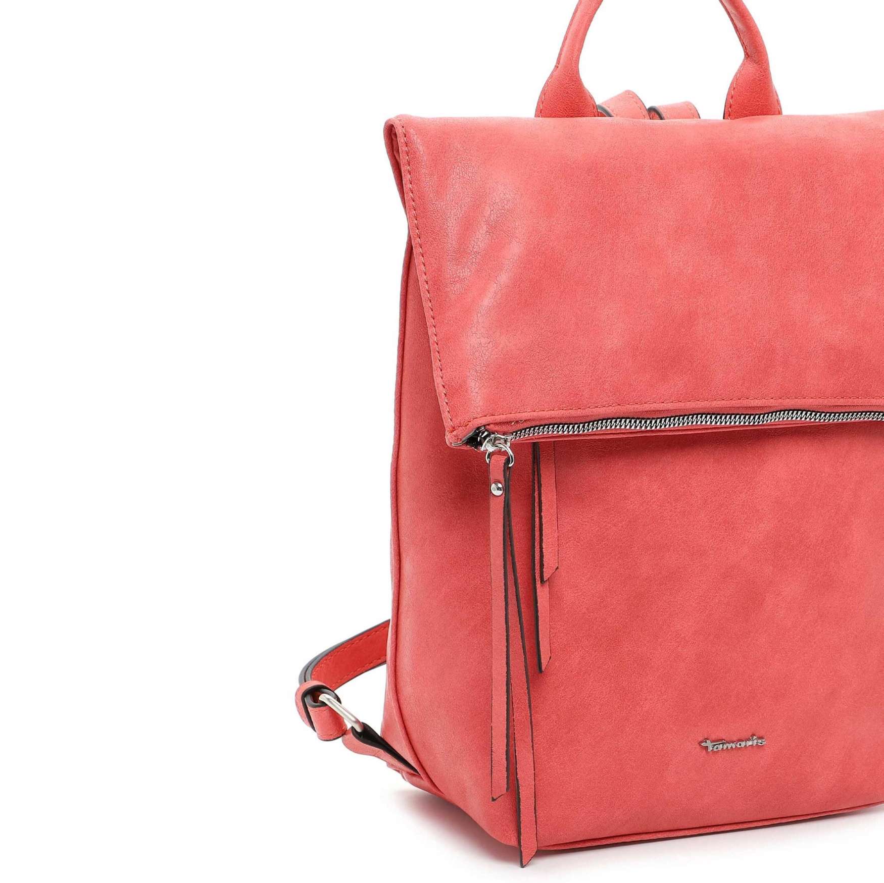 Batoh značky Tamaris Vás zaujme na první pohled svojí jednoduchostí a praktickými kapsičkami se zipem umístěnými pod klopou a v zadní části. Hladký svršek má zdobení logem značky a visací ozdobou na zipech. Batoh je uzavřený zipem a klopou s magnetickými prvky, tady se nacházejí dvě menší kapsičky z toho jedna má zip. Pro pohodlné nošení jsou zde dva délkově nastavitelné popruhy a malé ucho pro uchopení do ruky. Tento kousek bude ideálním společníkem na výlet, ale také při cestě do práce.