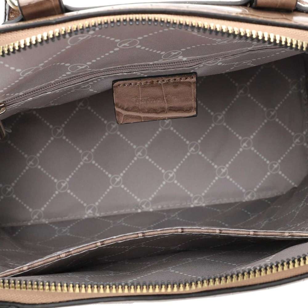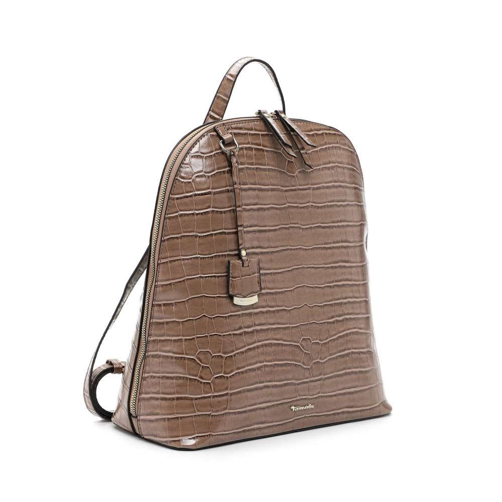 Půvabný batůžek od značky Tamaris doplní Váš vzhled elegancí a moderním vzhledem. Lesklý svršek zdobí vzor hadí kůže a visící aplikace se značkou výrobce. Hlavní nedělená kapsa je chráněná zipem a poskytuje dostatek prostoru, navíc disponuje menšími kapsičkami pro lepší organizaci Vašich cenností. Menší všitá kapsička na zip se nachází i na zadní straně batůžku. Délkově nastavitelné popruhy slibují pohodlí po celý den, ať už se vydáte na procházku nebo do práce.