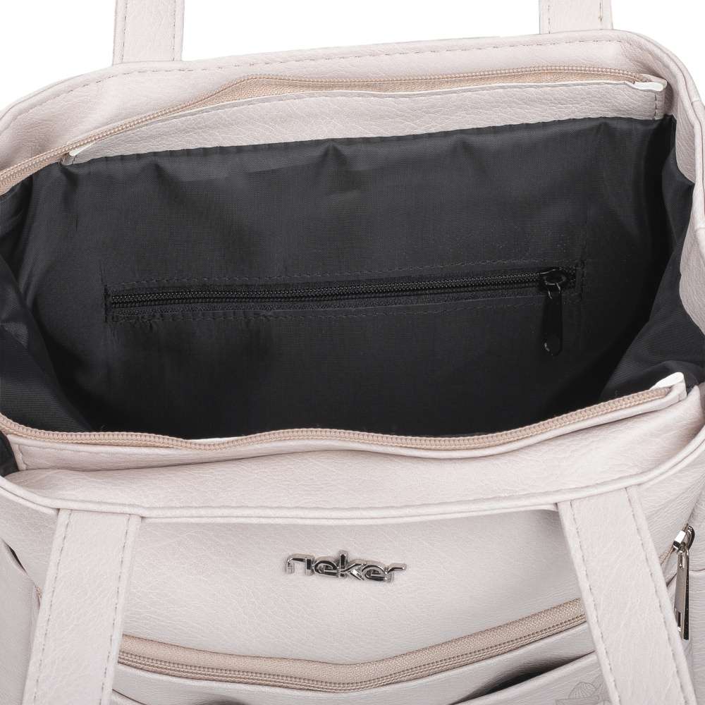 Kabelka RIEKER na první pohled zaujme harmonickým designem, který působí jemně, ale zároveň sebevědomě. Promyšlené zpracování nabízí dokonalou rovnováhu mezi estetikou a funkčností. Přední kapsička uzavřená zipem poskytuje bezpečné místo pro důležité drobnosti, zatímco dvě menší otevřené kapsy a praktické postranní přihrádky umožňují snadný přístup k věcem, které chcete mít neustále po ruce. Zadní kapsička se zipem nabízí diskrétní prostor pro cennosti. Promyšlený design navíc umožňuje zvětšit vnitřní prostor odepnutím bočních klipů, díky čemuž se kabelka přizpůsobí vašim potřebám během celého dne. Prostorný interiér vybavený dvěma menšími kapsičkami poskytuje dostatek místa na vše, co vás provází během dne. Pevné popruhy zaručují pohodlné nošení přes rameno, ať už se vydáte do práce, na setkání nebo na procházku městem. Kabelka RIEKER není jen praktickým doplňkem, ale vyjádřením vkusu, sebedůvěry a přirozené elegance, která vás bude provázet na každém kroku a dodá vašemu outfitu sofistikovaný nádech luxusu.