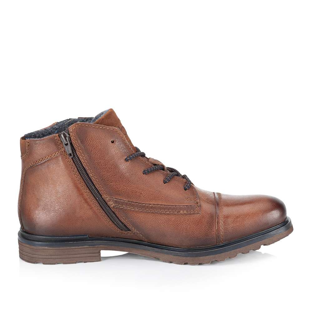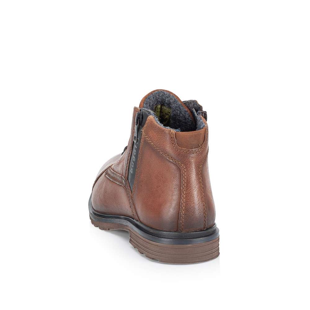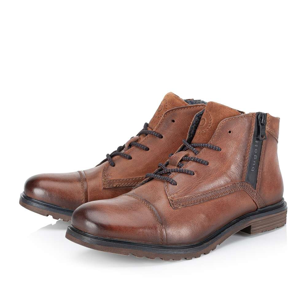 Detailní informace Pánské kotníkové boty značky BUGATTI jsou skvělým doplňkem pro všechny muže, kteří ocení moderní vzhled v kombinaci s pohodlím. Svršek z přírodní usně zajímavé hnědé barvy je hladký a decentně prošitý. Výrazným prvkem vzhledu je aplikace u kotníku se zipem a logem značky. Ke snadnému nazutí poslouží praktický zip z vnitřní části boty a šněrováním si obuv lehce přizpůsobíte na své chodidlo. Tyto boty jsou skvělou volbou pro každou příležitost, když hledáte kombinaci stylu a pohodlí.