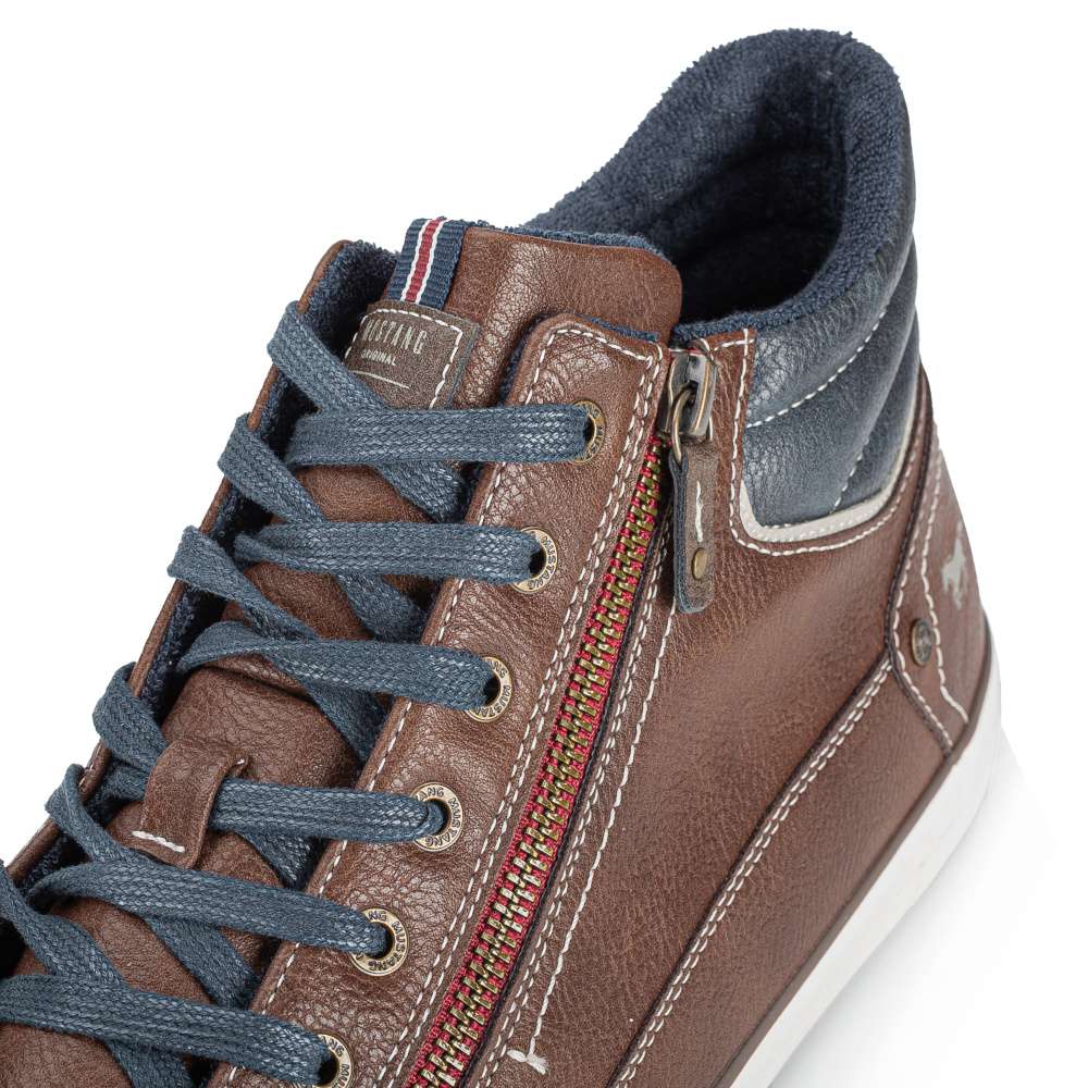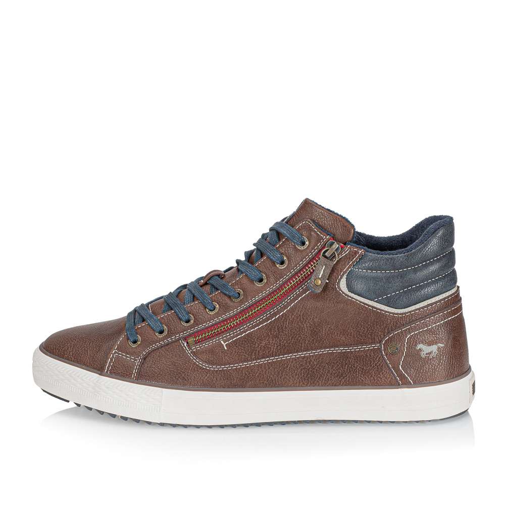 Pánské kotníkové boty značky MUSTANG sportovního stylu užijete ke všem příležitostem. Na elegantnosti získávají díky kontrastním detailům a šití. Mají hladký povrch a kulatou špičku. Šněrováním si je pak upravíte přímo k vaší noze. Netradičně na vnější straně je funkční zip pro snadné obutí. Tento kousek využijete jak na cestu do práce, pochůzkách po městě, tak na procházky krajinou.