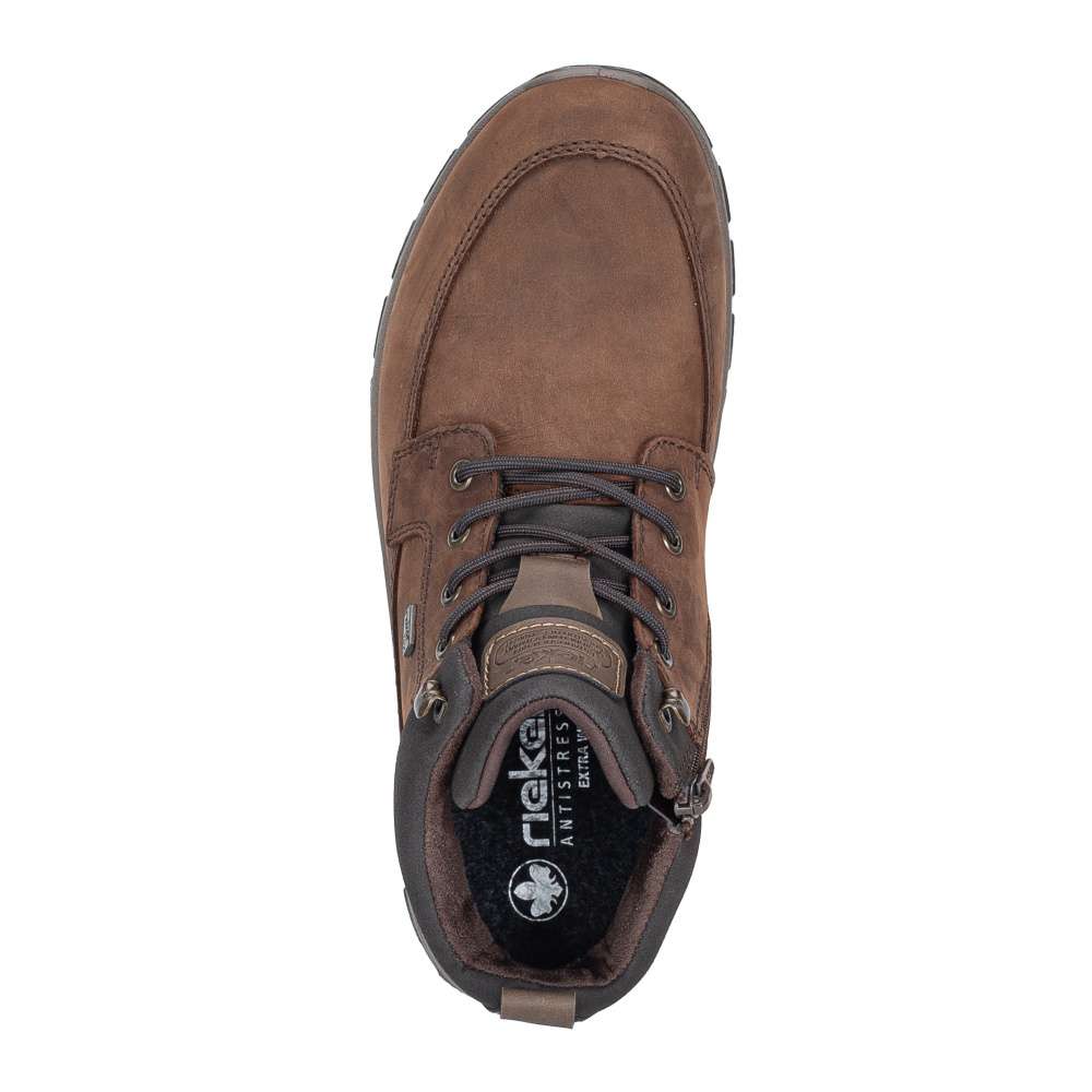Zimní obuv značky RIEKER je ideálním řešením pro muže, kteří ocení funkčnost, komfort a styl v jednom. Odolný svršek je vybaven nepromokavou membránou, která spolehlivě ochrání nohy před vlhkem a o teplo během mrazivých dnů se postará hřejivá podšívka. Kombinace šněrování a bočního zipu zajišťuje snadné a rychlé obouvání. Díky širšímu střihu a nárazům tlumící podešve poskytují boty maximální komfort i při delším nošení. Spolehlivá volba pro každodenní zimní využití jsou tyto boty značky RIEKER. Technologie: Antistress – díky čtyřem antistresovým vlastnostem – lehkosti, pružnosti, prostornosti a vynikající absorpci nárazů – vám boty RIEKER nabídnou komfortnější chůzi. EXTRA WIDE – boty jsou širšího střihu, tvar boty je přizpůsoben chodidlu pro vytvoření dostatečného prostoru v oblasti přední části chodidla. Rieker TEX – funkční vrstva, díky které je svršek boty nepromokavý a přesto prodyšný. Tato bota je vybavena vyjímatelnou stélkou.