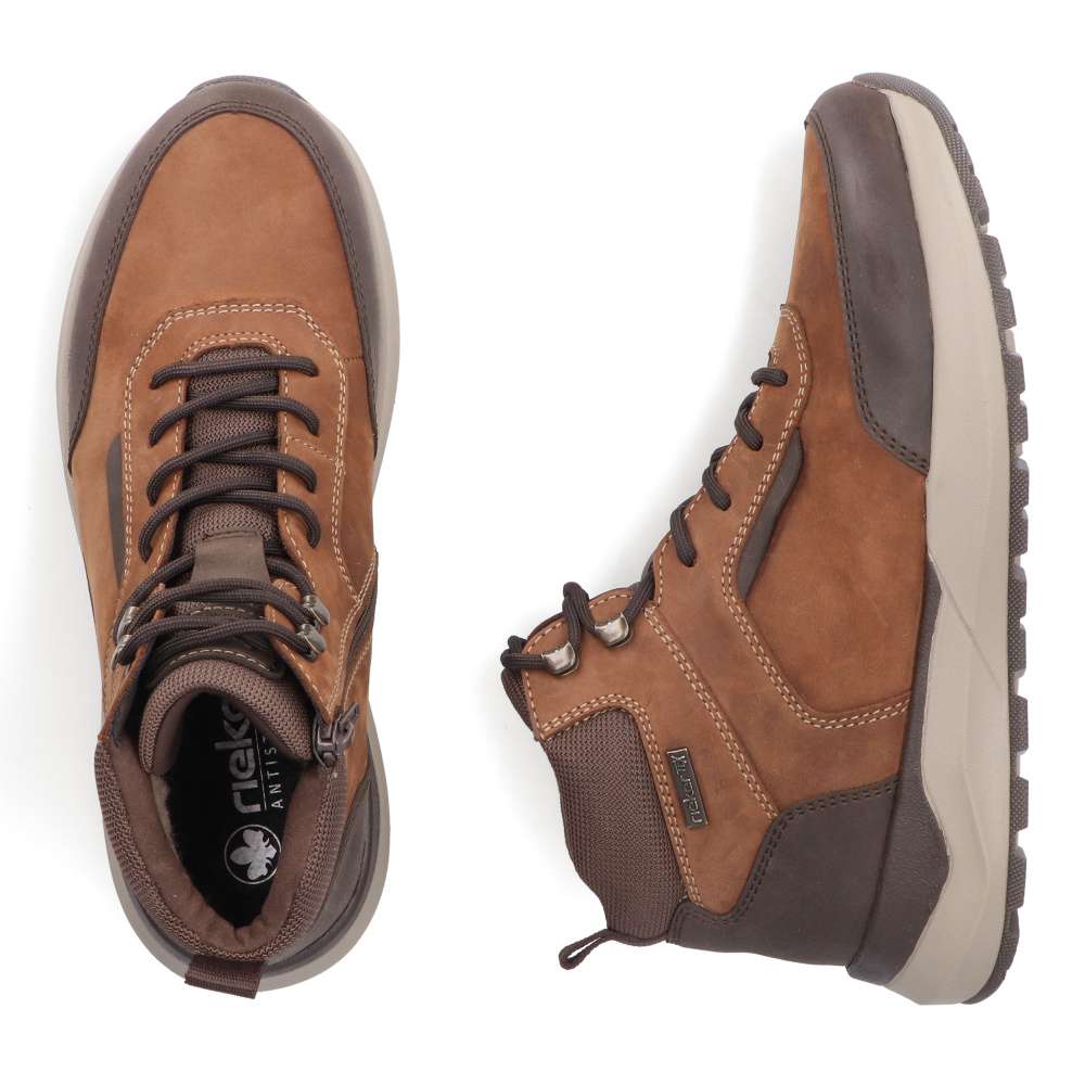 Tyto pánské boty RIEKER jsou perfektní kombinací praktičnosti a stylového designu zimních dní. Svršek v poutavé kombinaci barev a materiálů je vybaven funkční nepromokavou membránou, která zajistí sucho iv nepříznivém počasí, zatímco hřejivá podšívka z ovčí vlny ochrání před chladem. Obouvání usnadní zip z vnitřní části boty a šněrováním si upravíte obvod k dokonalému pohodlí. Komfort během celodenního nošení podporuje širší střih a podešev s tlumením nárazů. Ať už se chystáte do práce nebo na zimní procházku, tyto boty vám poskytnou jistotu, teplo a pohodlí. Technologie: Antistress – díky čtyřem antistresovým vlastnostem – lehkosti, pružnosti, prostornosti a vynikající absorpci nárazů – vám boty RIEKER nabídnou komfortnější chůzi. EXTRA WIDE – boty jsou širšího střihu, tvar boty je přizpůsoben chodidlu pro vytvoření dostatečného prostoru v oblasti přední části chodidla. Rieker TEX – funkční vrstva, díky které je svršek boty nepromokavý a přesto prodyšný. Podšívka je vyrobena z pravé ovčí vlny. Tato bota je vybavena vyjímatelnou stélkou.