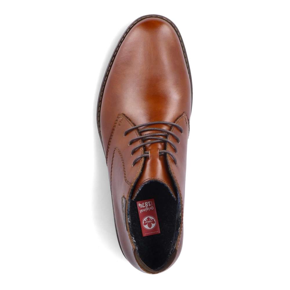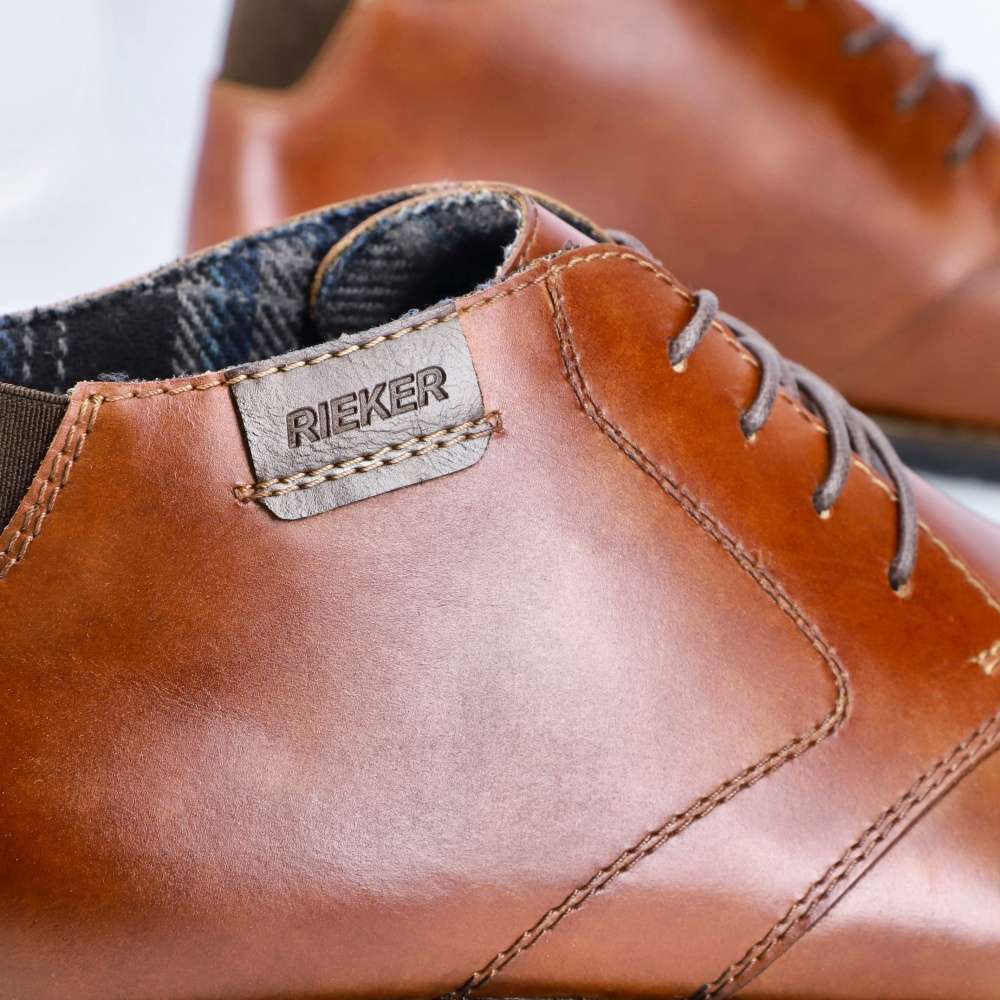 Detailní informace Tuto pánskou obuv značky RIEKER si zamilujete díky koženému svršku v hnědém provedení a bude dokonalým doplňkem vašeho vzhledu. Obuv je zdobená jemným prošitím, kontrastní gumičkou v patě a nášivkou s názvem značky. Ke snadnému obutí poslouží šněrování, kterým si boty snadno přizpůsobíte na své chodidlo. Měkká stélka Vám zaručí pohodlí po celý den, tento model se bude krásně vyjímat například k zimnímu kabátu.
