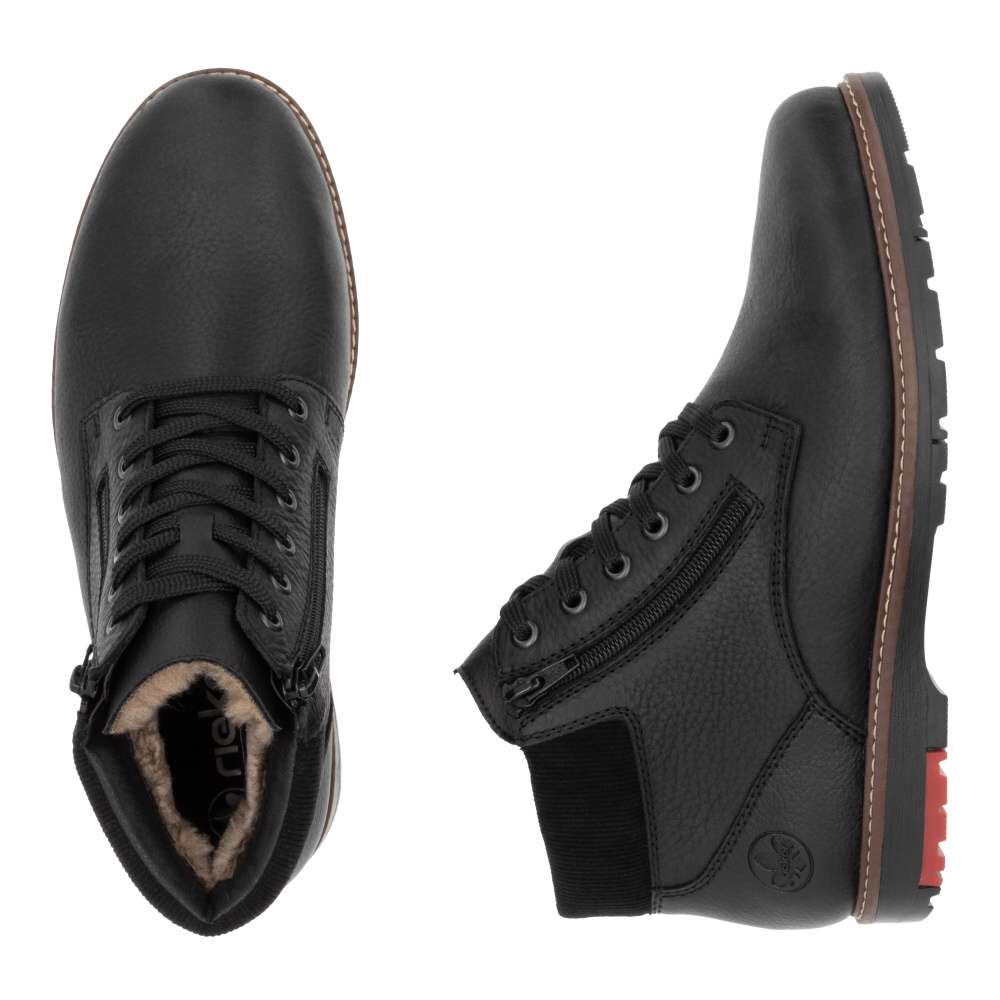 Stylová pánská obuv černé barvy od značky Rieker je navržena pro maximální pohodlí a elegantní vzhled. K jednoduchému a rychlému nazutí poslouží dva zipy po stranách. Šněrováním si můžete obuv dále upravit dle Vašich požadavků, aby Vám perfektně seděla a poskytovala maximální pohodlí. S hřejivou podšívkou z pravé ovčí vlny a vyjímatelnou stélkou se budete moct celý den procházet jako po obláčku. Tyto boty krásně doladí jakýkoliv Váš zimní outfit. Technologie: Antistress – podešev je díky této technologii lehká, flexibilní, absorbuje nárazy při došlapu a snadno se přizpůsobí každé noze. Podšívka je vyrobena z pravé ovčí vlny. Tato bota je vybavena vyjímatelnou stélkou.