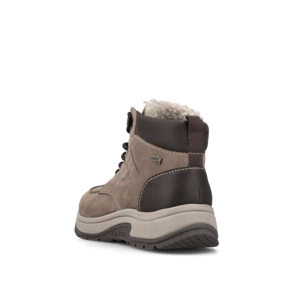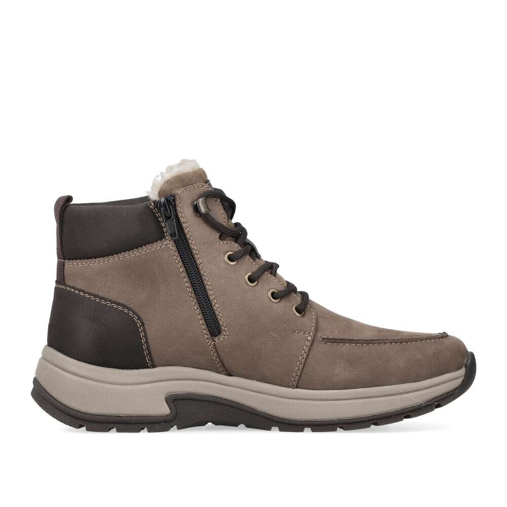 Moderní hnědé kotníkové boty Rieker jsou optimální volbou pro pohodlí a styl během chladnějších měsíců. Zip na vnitřní straně zaručí rychlé obutí a šněrování umožňuje individuální nastavení a perfektní přizpůsobení Vašim potřebám. Boty mají nepromokavou funkční vrstvu, která udržuje Vaše nohy suché i v deštivém počasí. S vyjímatelnou stélkou a podšívkou z ovčí vlny se budete při chůzi cítit příjemně po celý den. Tyto boty pro Vás budou tím nejlepším společníkem v nepříznivém počasí. Technologie: Antistress – podešev je díky této technologii lehká, flexibilní, absorbuje nárazy při došlapu a snadno se přizpůsobí každé noze. EXTRA WIDE – boty jsou širšího střihu, tvar boty je přizpůsobený chodidlu pro vytvoření dostatečného prostoru v oblasti přední části chodidla. Rieker TEX – funkční vrstva, díky které je svršek boty nepromokavý a přesto prodyšný. Podšívka je vyrobena z pravé ovčí vlny. Tato bota je vybavena vyjímatelnou stélkou.