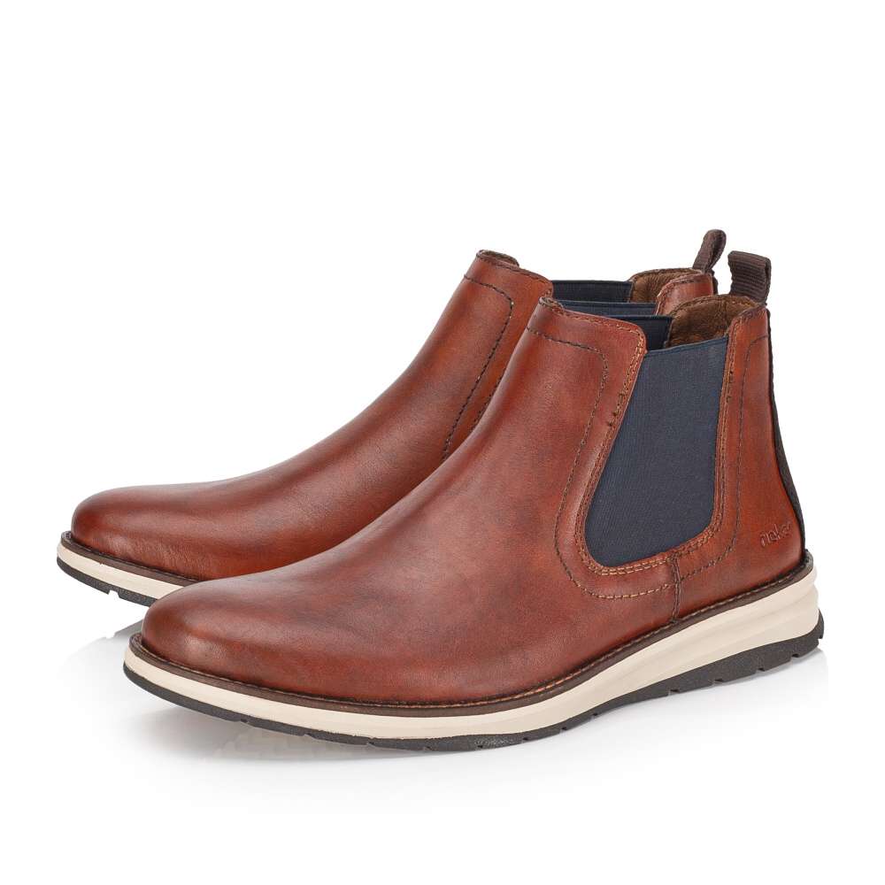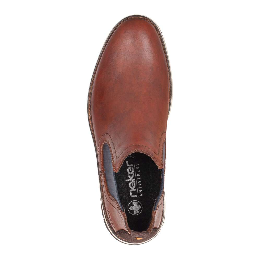 Elegantní boty od značky Rieker jsou nezbytným doplňkem každého moderního muže. Jejich kožený svršek v hnědé barvě je zdoben decentním prošíváním a poutkem v patní části, které spolu s pružným okrajem usnadní obutí. Měkká stélka Vám poskytne celodenní pohodlí a komfort, což je důležité při dlouhých pracovních dnech nebo společenských událostech. Tyto boty jsou tak univerzální a pohodlné, že jakmile si je jednou obujete, nebudete chtít nosit žádné jiné. Technologie: Antistress – díky čtyřem antistresovým vlastnostem – lehkosti, pružnosti, prostornosti a vynikající absorpci nárazů – vám boty RIEKER nabídnou komfortnější chůzi.