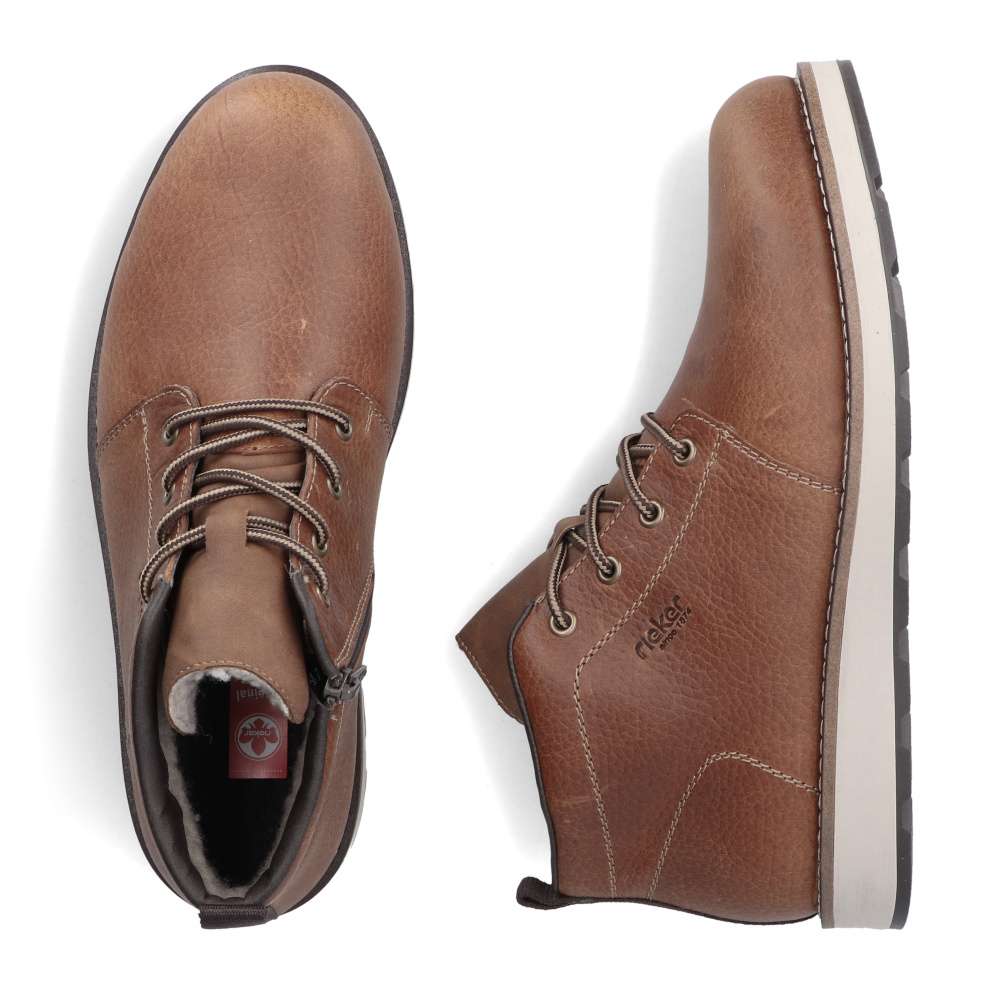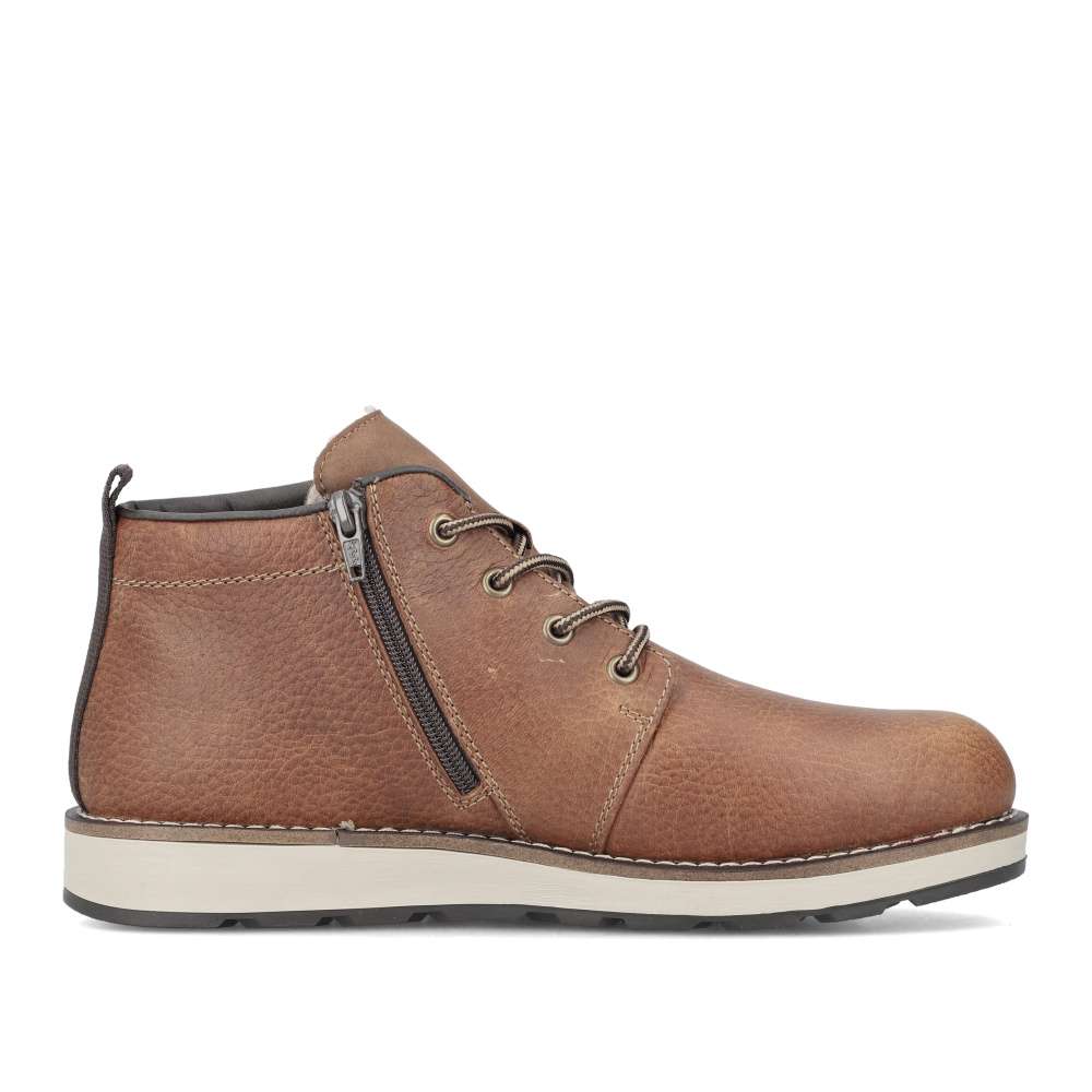 Pánské kožené kotníkové boty od RIEKER jsou kombinací elegance a pohodlí. Jejich hnědý kožený svršek je zdoben logem značky, což dodává obuvi decentní vzhled. Pro rychlé obutí a snadné nastavení jsou vybaveny zipem z vnitřní strany a šněrováním, kterým si můžete upravit obvod dle vašich potřeb. Zateplená podšívka a měkká stélka zajistí, že vaše nohy zůstanou v teple a pohodlí i v chladnějším počasí. Tyto boty jsou ideální volbou pro každodenní nošení s dotekem elegance a stylu. Technologie: Antistress – díky čtyřem antistresovým vlastnostem – lehkosti, pružnosti, prostornosti a vynikající absorpci nárazů – vám boty RIEKER nabídnou komfortnější chůzi.