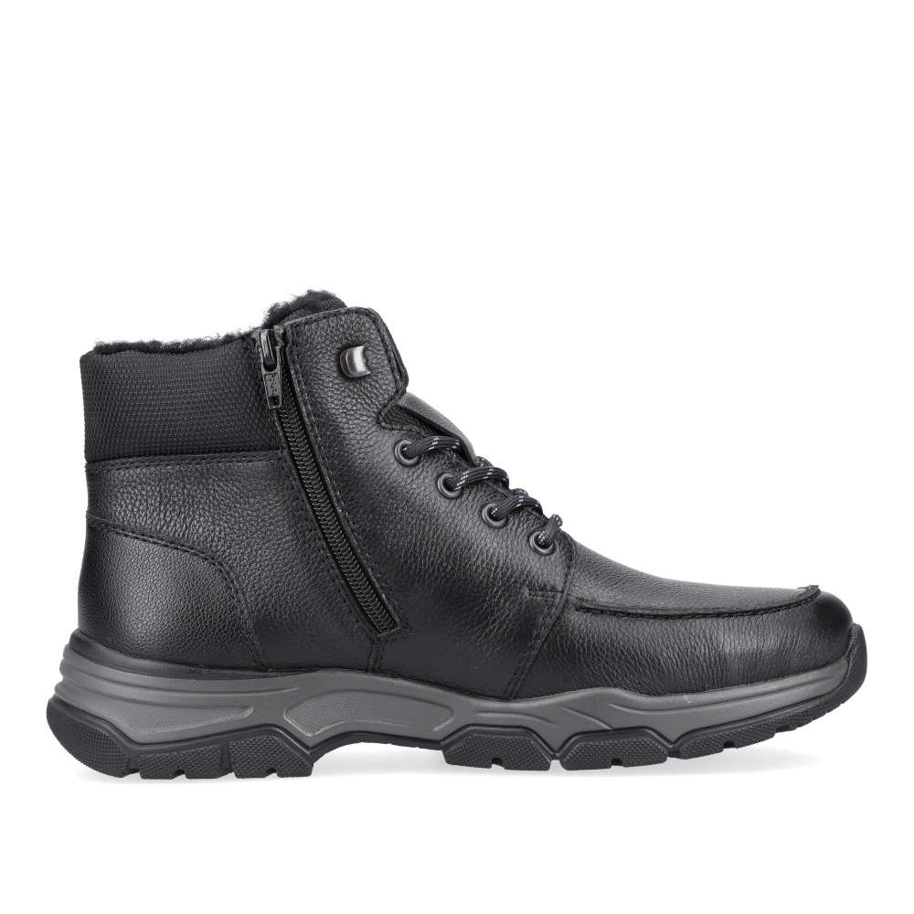 Kotníková pánská obuv s logem značky RIEKER, která zaručeně potěší nejen Vás ale i Vaše blízké. Svršek boty je tvořen pravou přírodní usní a z části vysoce kvalitní syntetikou. Tkaničkami na šněrování si boty můžete upravit přesně podle Vašich představ a funkční zip na vnitřní straně skvěle usnadní nazutí. S vyjímatelnou stélkou se můžete těšit na pohodlnou a komfortní chůzi po celý den nošení. S těmito zateplenými botami budou procházky v chladném počasí hned o něco veselejší. Technologie: Antistress – podešev je díky této technologii lehká, flexibilní, absorbuje nárazy při došlapu a snadno se přizpůsobí každé noze. Podšívka je vyrobena z pravé jehněčí vlny. Tato bota je vybavena vyjímatelnou stélkou.