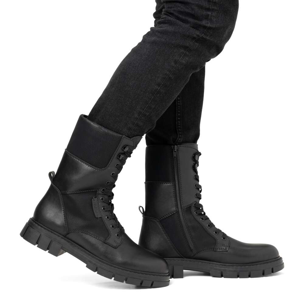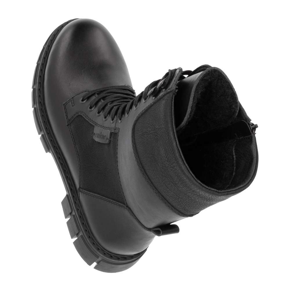 Tyto mohutné boty RIEKER se stanou výrazným prvkem vašeho šatníku. Černý svršek kombinuje různé materiály a je zdoben nášivkou s logem značky, což jim dodává stylový vzhled. Šněrování a zip na vnitřní straně zajišťují snadné obouvání a perfektní přizpůsobení. Bezpečnou chůzi zajistí stabilní podešev s výrazným vzorkem, který poskytuje vynikající trakci na všech površích. Měkká stélka a zateplení ovčí vlnou zajistí, že vaše nohy budou v teple a pohodlí i během chladných dnů. Tyto boty jsou skvělou volbou pro každodenní nošení, kdy chcete kombinovat komfort se svojí osobitostí. Technologie: Antistress – díky čtyřem antistresovým vlastnostem – lehkosti, pružnosti, prostornosti a vynikající absorpci nárazů – vám boty RIEKER nabídnou komfortnější chůzi. EXTRA WEIT – boty jsou širšího střihu, tvar boty je přizpůsobený chodidlu pro vytvoření dostatečného prostoru v oblasti přední části chodidla. Podšívka je vyrobena z pravé ovčí vlny.