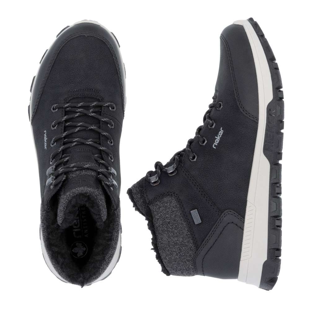 Pánové máme pro Vás zimní obutí ve stylovém provedení, značka RIEKER vytváří obuv moderní a maximálně komfortní. Materiál svršku černé barvy je vybaven nepromokavou membránou a svojí kombinací materiálů ve spojení s logem značky vytváří designový vzhled tohoto modelu. Ke snadnému obutí poslouží šněrování, díky kterému si boty snadno přizpůsobíte na své chodidlo. V zimním období oceníte zateplení a navíc mají tyto boty vyjímatelnou stélku vyrobenou z paměťové pěny, která se přizpůsobí tvaru chodidla. Módní vzhled s funkčními prvky ocení nejeden praktický muž ve svém šatníku. Technologie: Antistress – díky čtyřem antistresovým vlastnostem – lehkosti, pružnosti, prostornosti a vynikající absorpci nárazů – vám boty RIEKER nabídnou komfortnější chůzi. MemoSoft – unikátní stélka z paměťové pěny, která změkčuje došlap, ale také se maximálně přizpůsobí tvaru Vašeho chodidla. Rieker TEX – funkční vrstva, díky které je bota nepromokavá a přesto prodyšná. Tato bota je vybavena vyjímatelnou stélkou.