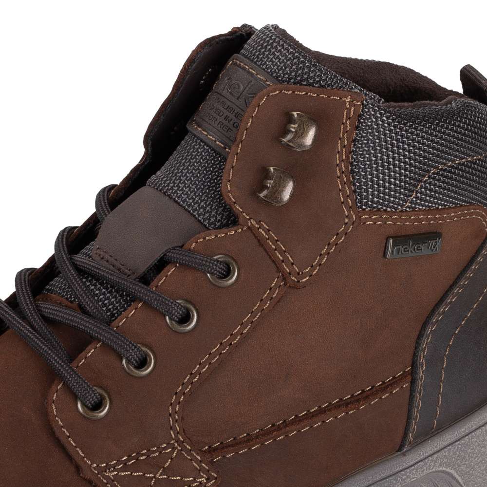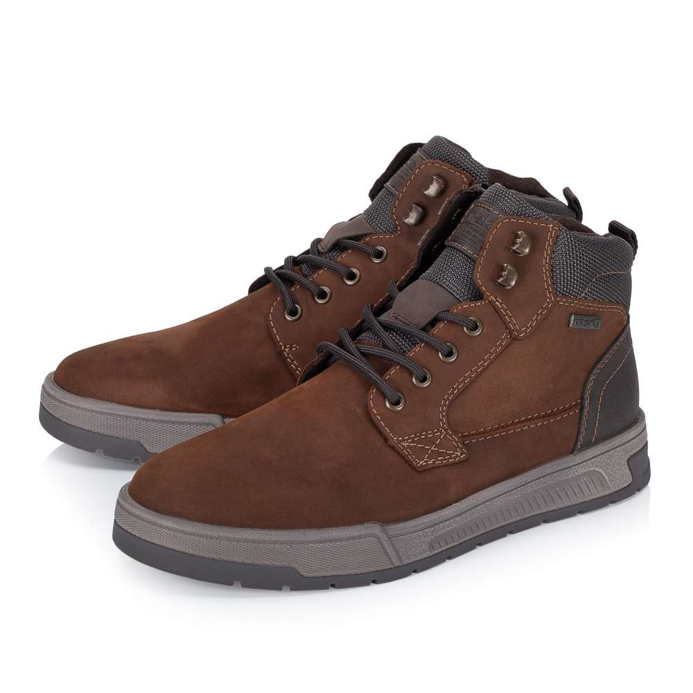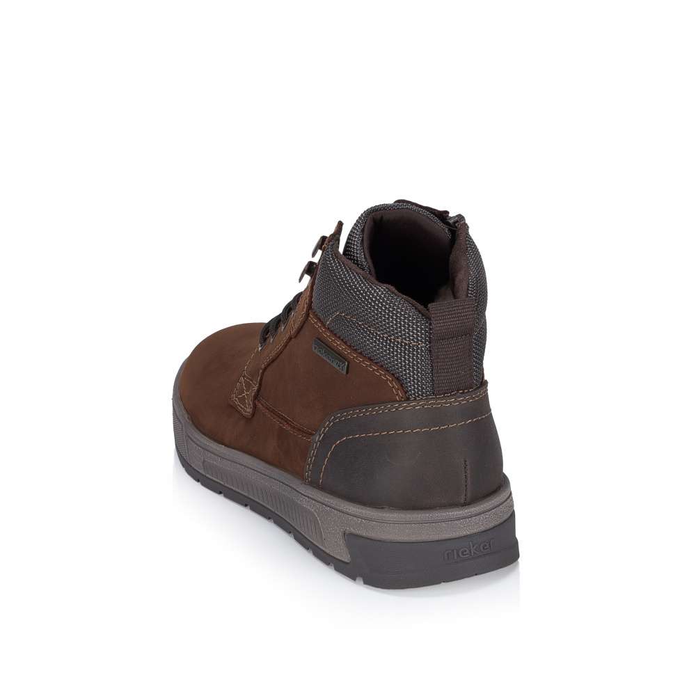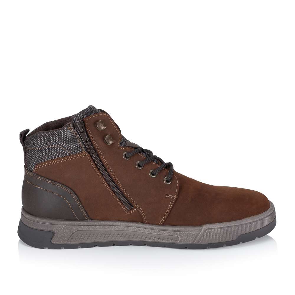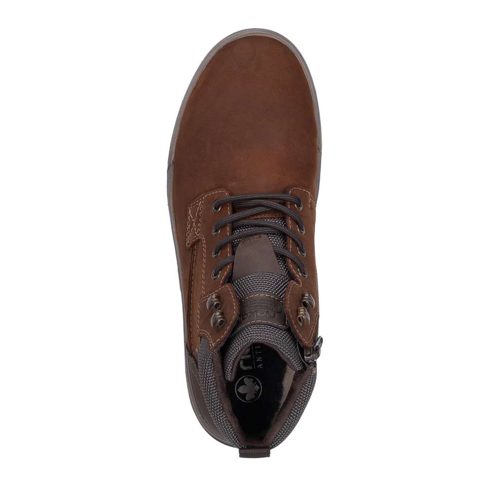 Stylové kotníkové boty RIEKER, které zvládnou i nepříznivé počasí a vytvoří dostatečný prostor chodidlu svojí šířkou. Hnědý svršek s kontrastními detaily vytváří moderní vzhled, zatímco nepromokavá membrána chrání před deštěm a vlhkostí. Pohodlné nazouvání zajistí kombinace šněrování a bočního zipu, která zároveň umožní ideální přizpůsobení obuvi tvaru nohy. O teplo se postará podšívka z ovčí vlny a maximální komfort zajistí vyjímatelná stélka. Podrážka s tlumením nárazů přidává stabilitu a pohodlí během každého kroku. Tento model bot je skvělá volba pro městský ruch i volné chvíle.