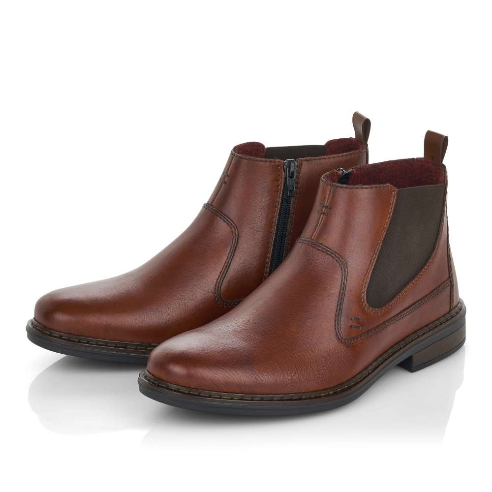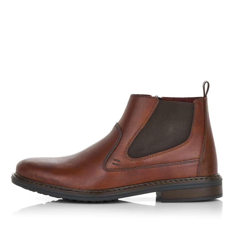 Detailní informace Elegantní pánský model od značky RIEKER s dvojitým prošitím a hladkým povrchem z hladké přírodní usně. Pro snadnější obutí zde poslouží funkční zip a pružná gumka na vnější straně. S měkkou stélkou se můžete těšit na komfortní a pohodlnou chůzi po celý den nošení. Tyto boty si můžete obout na městské pochůzky nebo na cesty do práce.