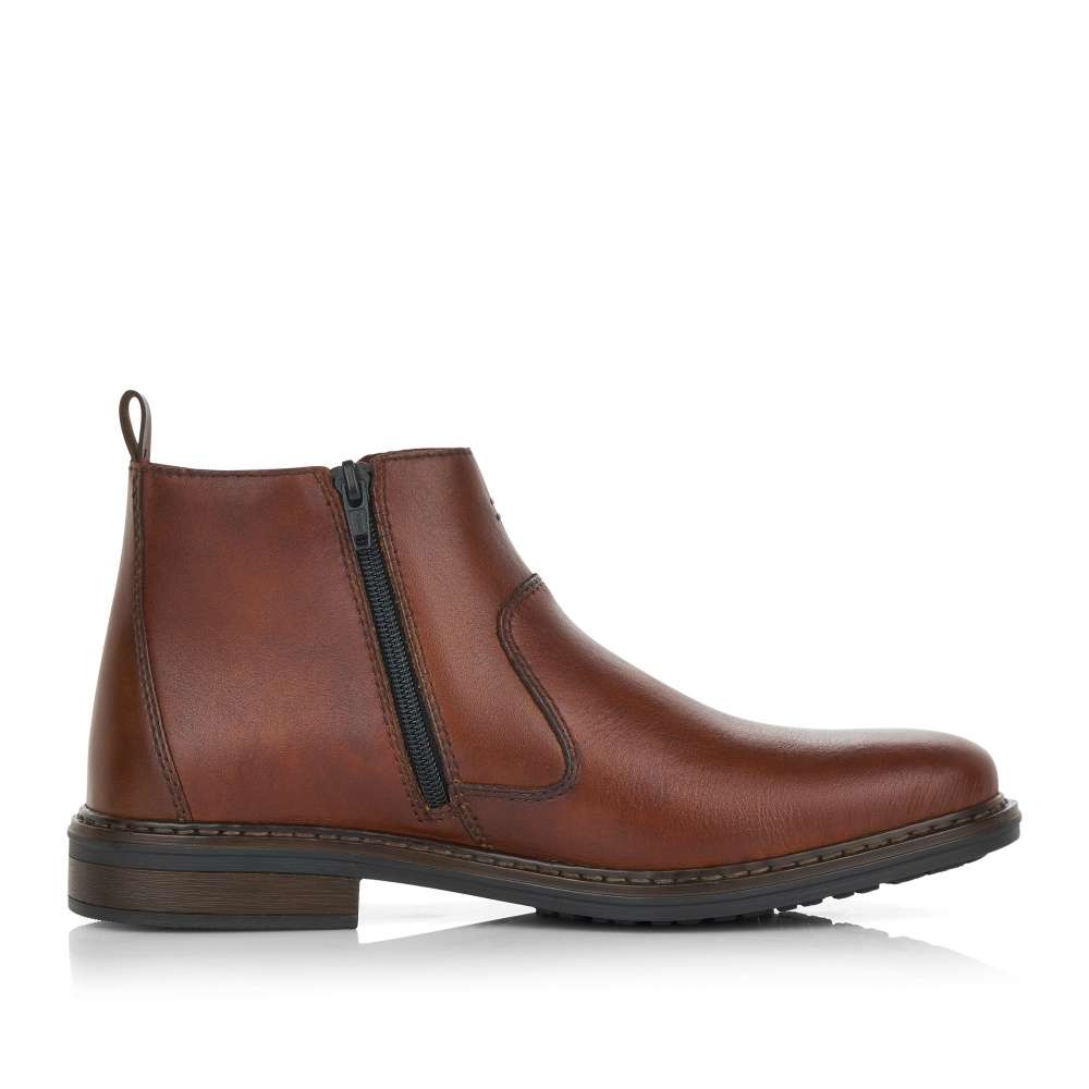 Elegantní pánský model od značky RIEKER s dvojitým prošitím a hladkým povrchem z hladké přírodní usně. Pro snadnější obutí zde poslouží funkční zip a pružná gumka na vnější straně. S měkkou stélkou se můžete těšit na komfortní a pohodlnou chůzi po celý den nošení. Tyto boty si můžete obout na městské pochůzky nebo na cesty do práce. Technologie: Antistress – podešev je díky této technologii lehká, flexibilní, absorbuje nárazy při došlapu a snadno se přizpůsobí každé noze.