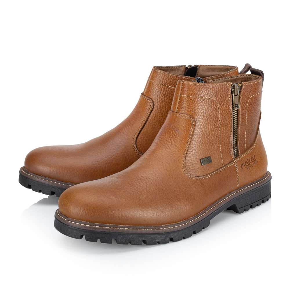 Tento pánský kožený model kotníkových bot od značky RIEKER nabízí nejen špičkový vzhled, ale také maximální komfort, který oceníte zejména v chladných dnech. Hnědý kožený svršek je vybaven nepromokavou membránou, která zaručuje ochranu proti vlhkosti, a také zipy na bočních stranách pro snadné obouvání. Stabilní podešev a zateplení ovčí vlnou pak poskytují pohodlí a teplo pro nohy. Tyto kotníkové boty jsou dokonalou kombinací stylu, funkčnosti a pohodlí pro moderního muže. Technologie: Antistress – díky čtyřem antistresovým vlastnostem – lehkosti, pružnosti, prostornosti a vynikající absorpci nárazů – vám boty RIEKER nabídnou komfortnější chůzi. Rieker TEX – funkční vrstva, díky které je svršek boty nepromokavý a přesto prodyšný. Podšívka je vyrobena z pravé ovčí vlny.