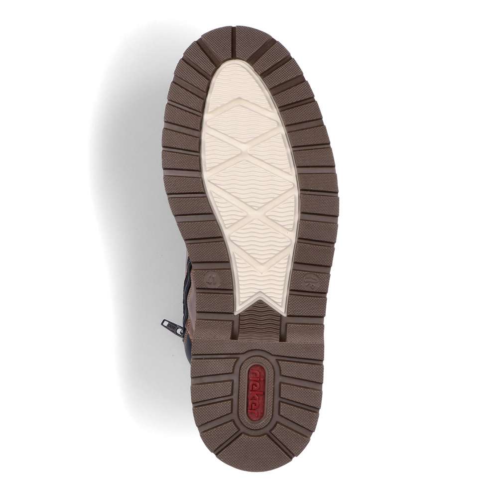 Hnědé kotníkové boty značky RIEKER, ve kterých se budete cítit příjemně a zima Vás nezaskočí. Svršek této boty je hladký s tmavším zbarvením paty. Z vnitřní strany je funkční zip, který Vám pomůže k lepšímu prozutí a šněrováním si doladíte obuv přímo na nohu. Díky unikátní funkční vrstvě Rieker TEX je obuv nepromokavá, ale přesto prodyšná. Výška podešve cca 3,5 cm a její hrubší vzor Vám dodá komfort, který s Vámi bude celý den. Tento model si v zimním období zajisté oblíbíte a stane se Vaší součástí. Technologie: Antistress - podešev je díky této technologii lehká, flexibilní a absorbuje nárazy při došlapu a snadno se přizpůsobí každé noze. Rieker TEX - funkční vrstva, díky které je bota nepromokavá a přesto prodyšná. Obuv má vyjímatelnou stélku.