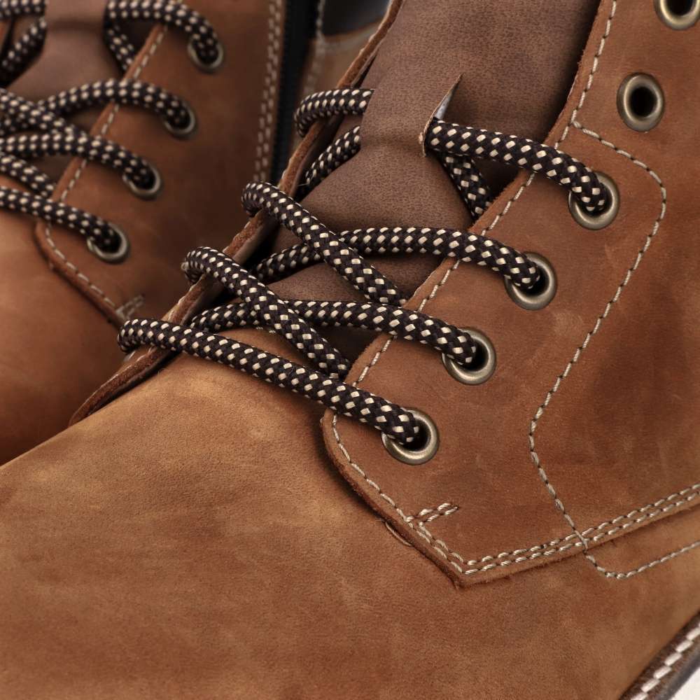 Tato pánská zimní kotníková obuv značky Rieker je vzhledem ke své jednoduchosti, a přesto trendovosti, ideálním doplňkem do Vašeho šatníku. Kožený svršek v módní žluté barvě je doplněn o barevně odlišené díly v opatkové části a kolem kotníku, a je kontrastně sladěn s bílou podešví. K uzavírání zde slouží funkční zip, tkaničkami si obuv upravíte na nohu dle potřeby tak, aby sedla jako ulitá a ochránila Vás tak před sněhem a chladem. K tomu dopomáhá také podšívka vyteplená pravou jehněčí vlnou a speciální TEX membrána, díky které budete v suchu i při vycházce sněhem. Tento model Vám bude ideálním doplňkem jak do města, tak do přírody. Technologie: Antistress – podešev je díky této technologii lehká, flexibilní, absorbuje nárazy při došlapu a snadno se přizpůsobí každé noze. Rieker TEX – funkční vrstva, díky které je bota nepromokavá a přesto prodyšná.