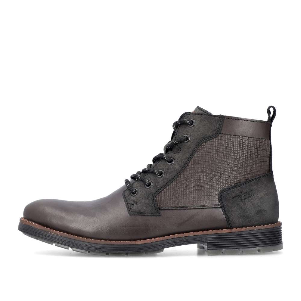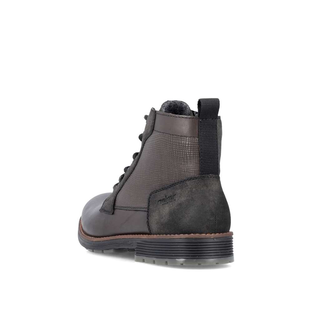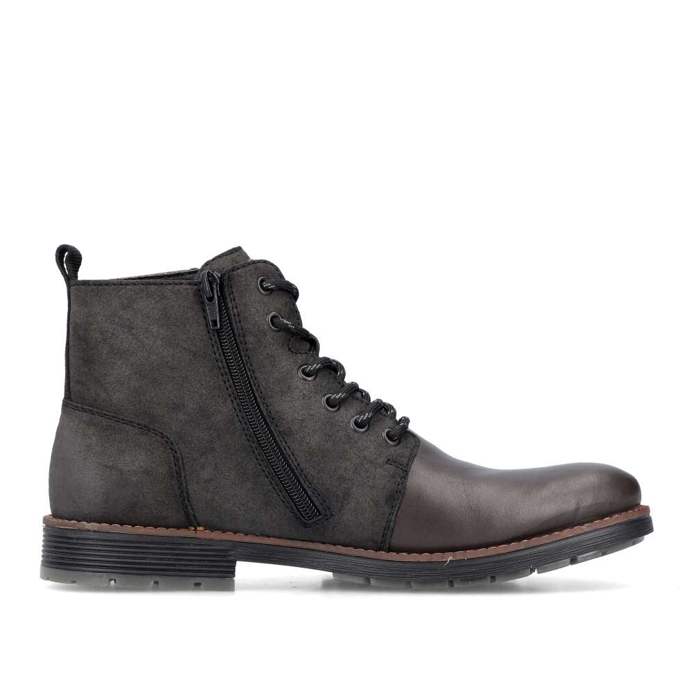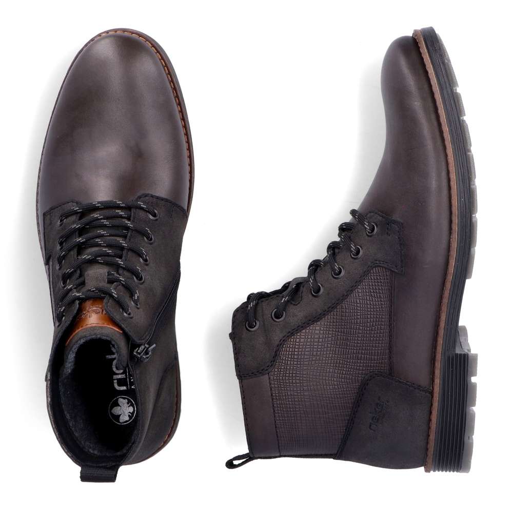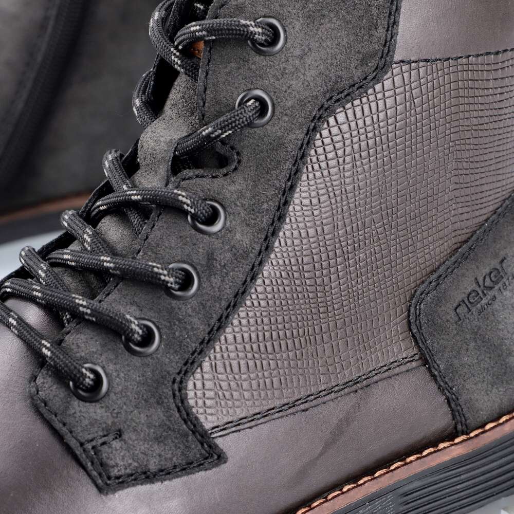 Moderní styl těchto bot RIEKER okouzlí na první pohled, zajímavý vzor v horní části a ozdobné logo značky při šněrování dodávají botám charakter. Jednoduché obutí je zajištěno bočním zipem a díky šněrování si můžete boty upravit přesně podle svých preferencí. Pohodlí každým krokem budete cítit díky měkké stélce, kterou lze vyjmout nebo vyměnit. Tyto boty jsou nejen stylovým doplňkem vašeho outfitu, ale také praktickým a pohodlným společníkem pro každý den. Technologie: Antistress – díky čtyřem antistresovým vlastnostem – lehkosti, pružnosti, prostornosti a vynikající absorpci nárazů – vám boty RIEKER nabídnou komfortnější chůzi. Tato bota je vybavena vyjímatelnou stélkou
