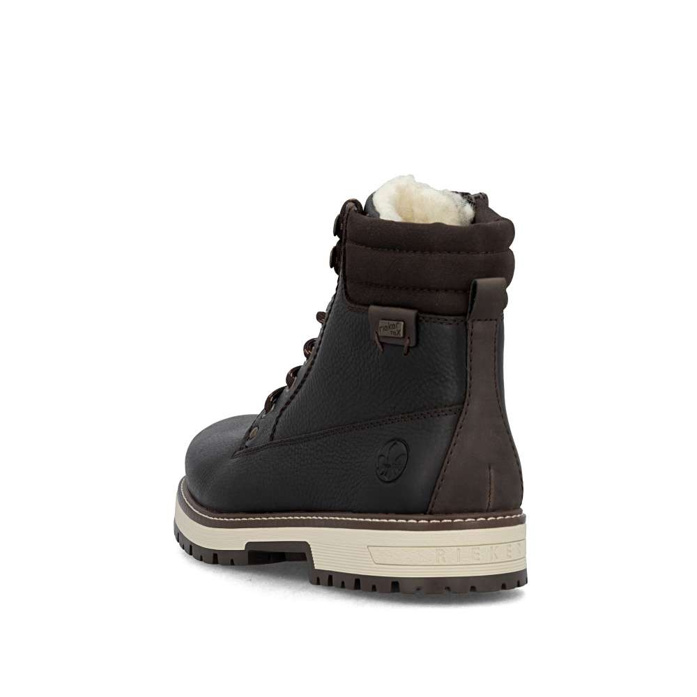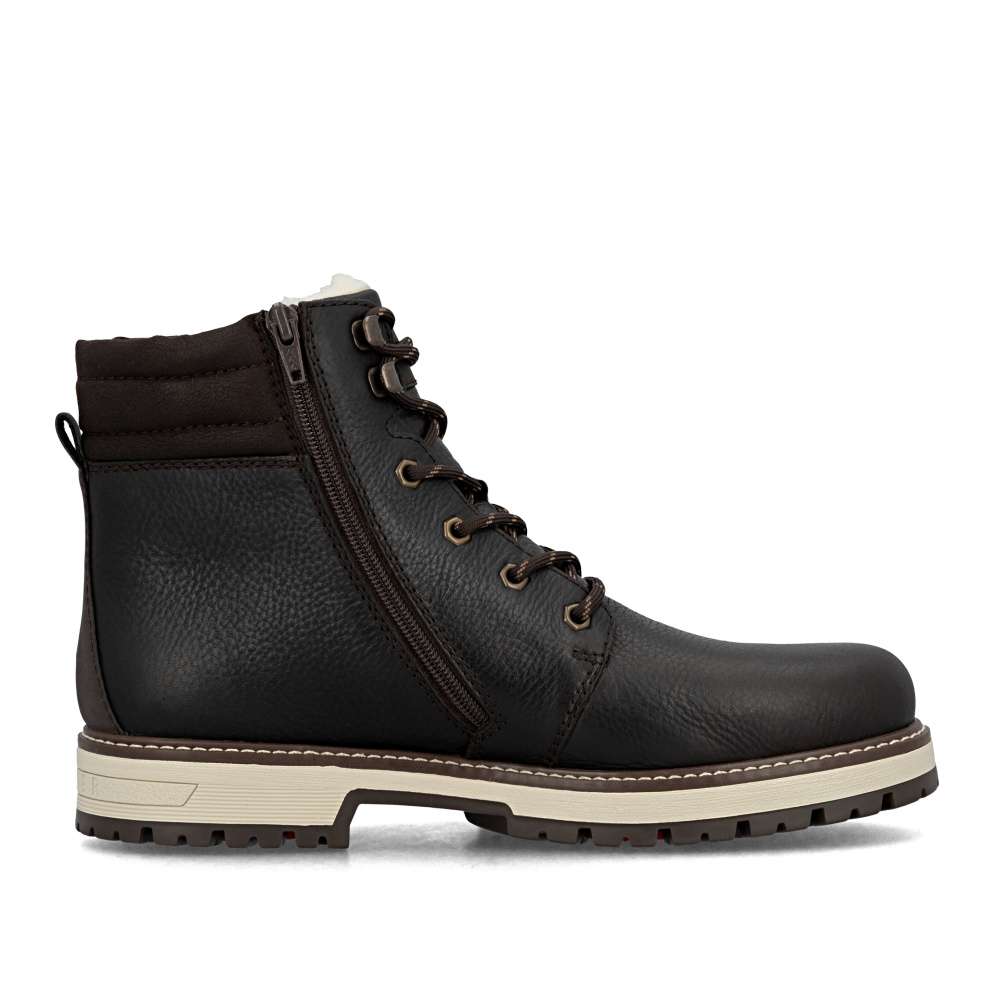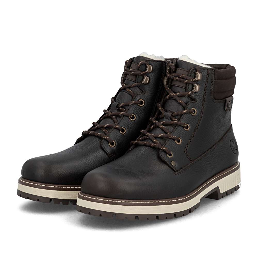 Detailní informace Tento trendy model pánské zimní kotníkové obuvi značky Rieker Vás jistě zaujme nejen svým vzhledem, ale také funkčností. Hladký kožený svršek v hnědé barvě je doplněn o prošitý lem horního okraje, který dokonale doplňuje jejich vzhled. Pohodlí a sucho při nošení Vám zaručí kombinace speciální membrány s technologií TEX, podšívka vyteplená hřejivou ovčí vlnou a měkká vyjímatelná stélka. Šňůrky ve spojení s funkčním zipem usnadní obutí a přizpůsobení si boty přímo na nohu. Unikátní prvek RIEKER Grip v podešvi zabrání uklouznutí a Váš krok bude stabilní v mrazu i sněhu díky němu. V tomto kousku budete vypadat stylově za každé situace, a zároveň si budete připadat chráněni před nepřízní počasí.