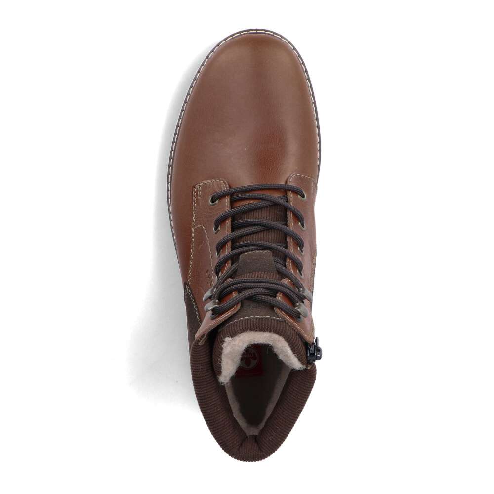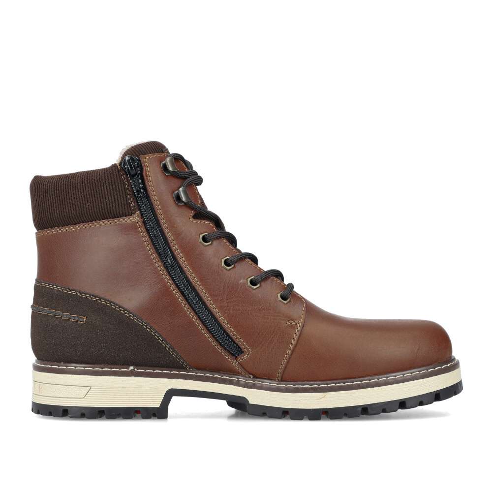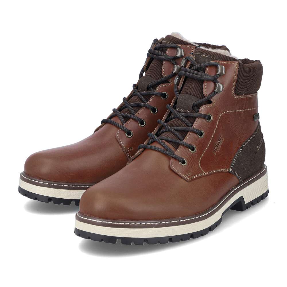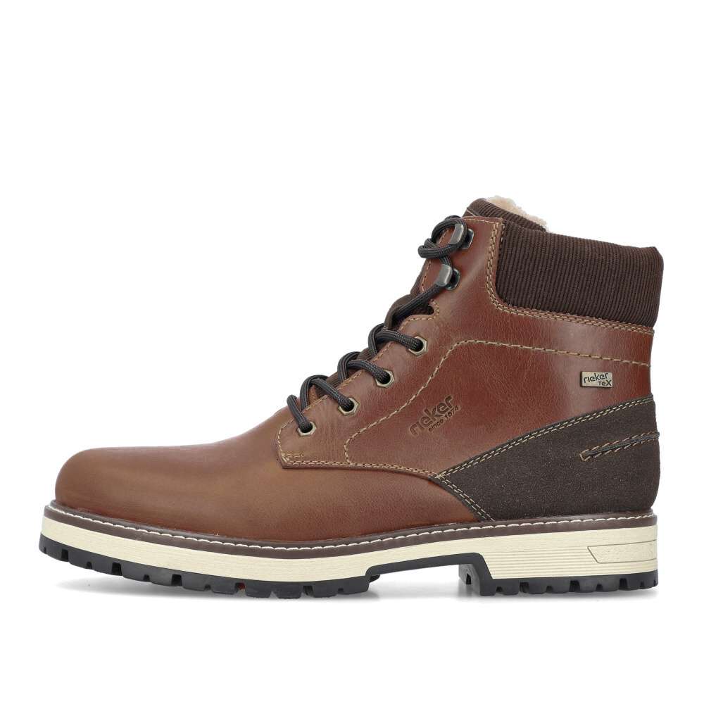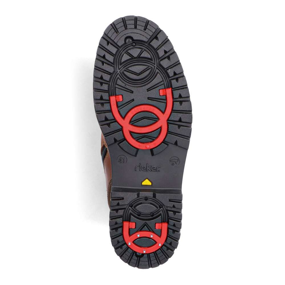 V těchto zimních pánských kotníkových botách značky Rieker trendy střihu se bude jistě cítit dobře každý vyznavač módních trendů. Svršek materiálu v módní hnědé barvě je dekorován ozdobným prošitím, tmavšími částmi a logem značky. Boty jsou uzavíratelné funkčním zipem, nacházejícím se na vnitřní straně kotníku a přizpůsobit botu dle Vašich požadavků si můžete tkaničkami. Nejen svým vzhledem jsou tyto boty značky Rieker zajímavé. K dokonalosti jim pomáhá i hřejivá podšívka z ovčí vlny, speciální nepromokavá membrána a podešev s bezpečnostním systémem zabraňujícím uklouznutí. Dokonale se budou hodit například k džínám, využijete je na schůzku s přáteli, ale i ven do zasněženého počasí. Technologie: Antistress – díky čtyřem antistresovým vlastnostem – lehkosti, pružnosti, prostornosti a vynikající absorpci nárazů – vám boty RIEKER nabídnou komfortnější chůzi. Rieker TEX – funkční vrstva, díky které je svršek boty nepromokavý a přesto prodyšný. RiekerGrip – dvoupolohový bezpečnostní systém s hroty pro chůzi na kluzkém povrchu a ledě. Pro správnou funkci je třeba udržovat podrážku čistou. Podšívka je vyrobena z pravé ovčí vlny. Tato bota je vybavena vyjímatelnou stélkou.