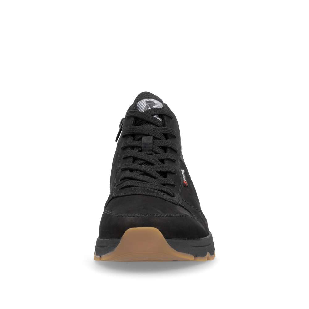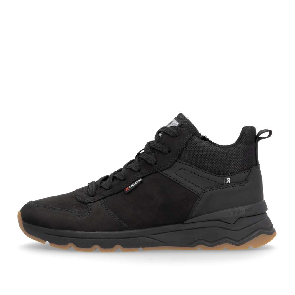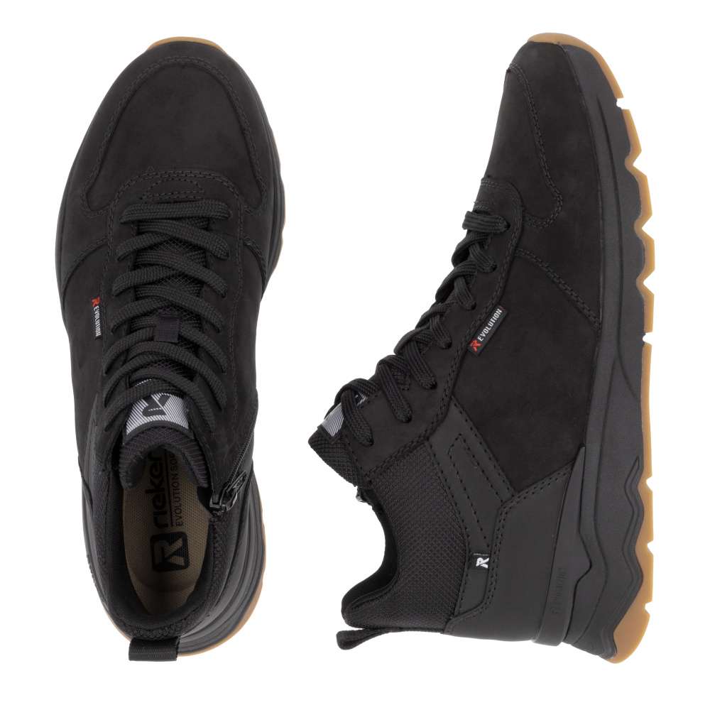Rieker REVOLUTION je nová řada moderní sportovní obuvi s obrovským důrazem na komfort a pohodlí i při celodenním nošení. Hledáte pohodlné zimní boty, které budou skvělým parťákem na každém Vašem kroku? Potom nesmí Vaší pozornosti uniknout tyto kotníkové boty, které si pro jejich nadčasový design určitě zamilujete. Tenisky v černé barvě jsou lehce prošívané, působí tedy čistým a minimalistickým dojmem. K snadnému a rychlému obutí můžete využít praktický zip po straně obuvi a šněrování se postará o přizpůsobení Vašim potřebám. Skvělou vlastností tohoto vzoru je jemné zateplení velurem a vyjímatelná měkká stélka, což znamená, že Vás nohy v průběhu dne bolet rozhodně nebudou. Boty jsou vybavené vodoodpudivou membránou, díky které můžete brouzdat i v nepříznivém počasí. Tyto boty krásně doladí jakýkoliv Váš zimní outfit. Technologie: RevolutionSoft – unikátní stélka, která změkčuje došlap a přizpůsobí se tvaru Vašeho chodidla. Revolution Walk Dry – vodoodpudivá membrána s nano povlakem, která zabrání proniknutí vlhkosti do bot. Tato bota je vybavena vyjímatelnou stélkou.