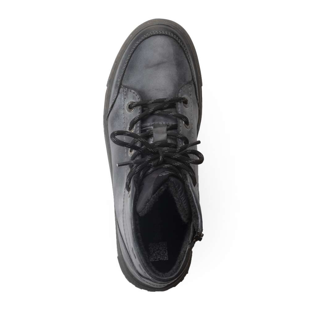 Šedý kožený svršek s elegantním výrazným šitím je na patě ozdoben vystouplým názvem značky. Snadné nazouvání a přizpůsobení obuv dle Vašich požadavků zajistí funkční zip a šněrování.